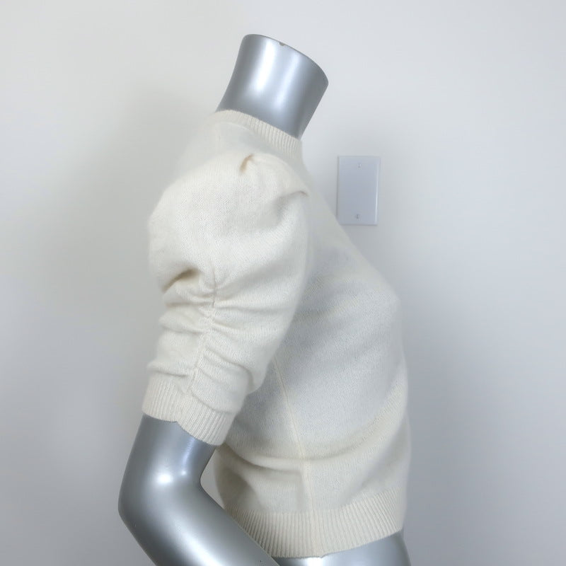 FRAME Frankie Cashmere Puff Sleeve Crew Sweater Vanilla Size Medium