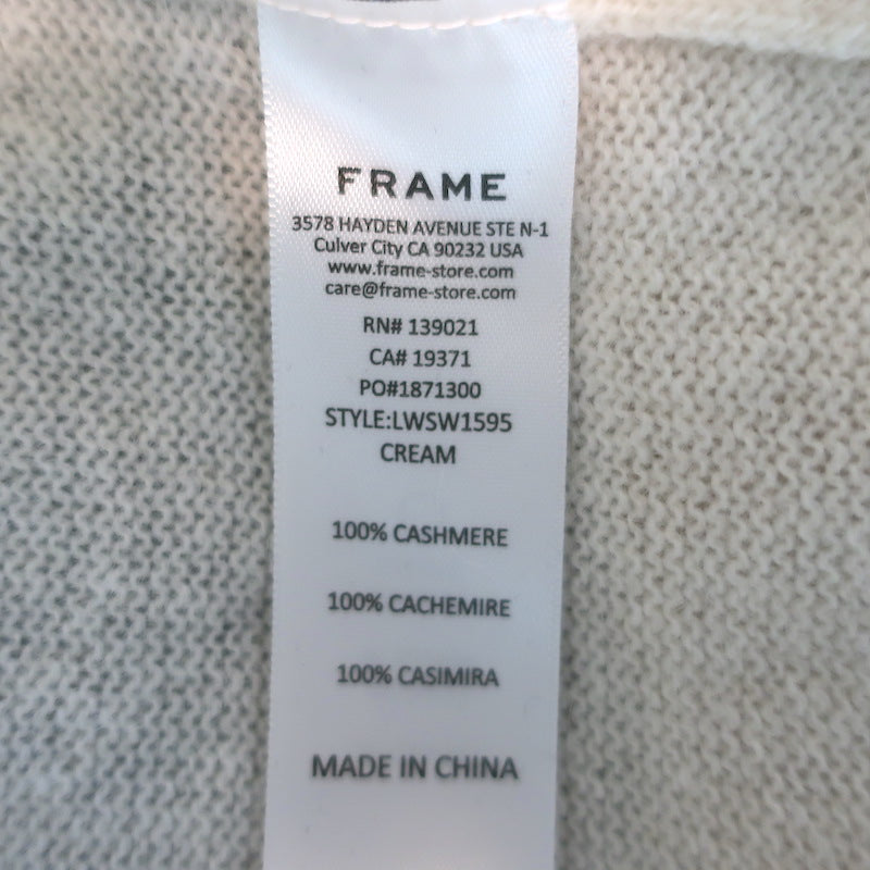 FRAME Ruched Sleeve Cashmere Sweater Cream Size Small