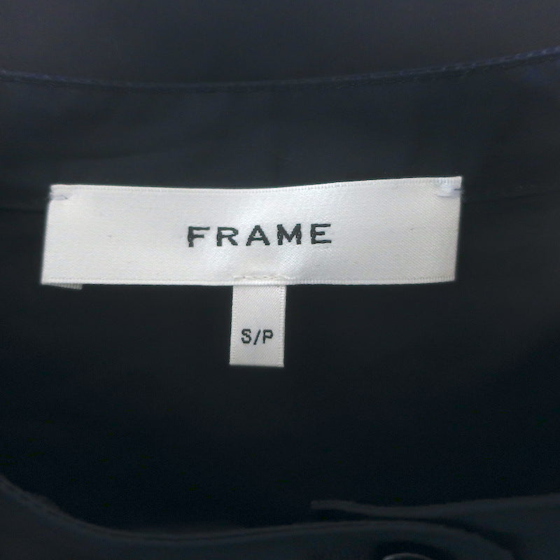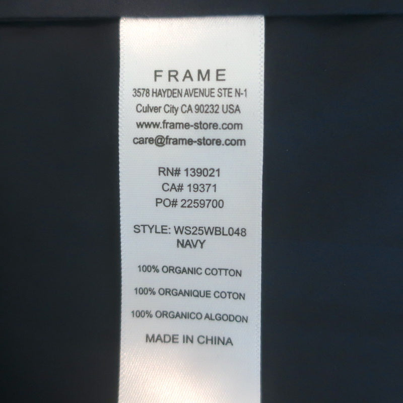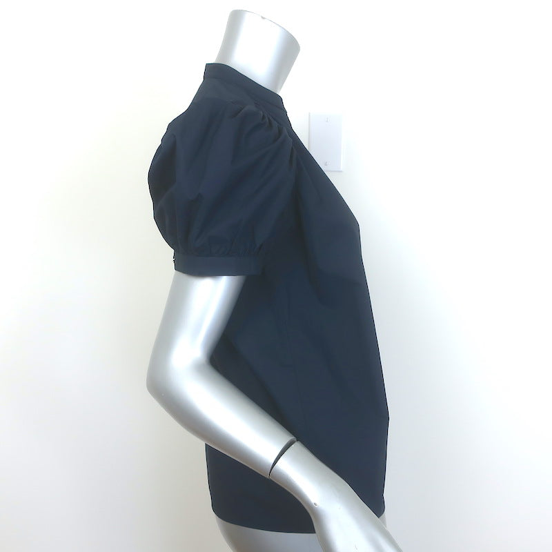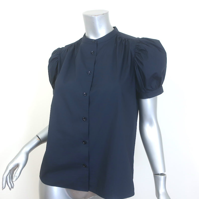 FRAME The Gathered Puff Sleeve Top Navy Cotton Poplin Size Small