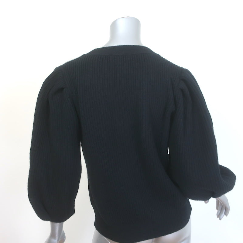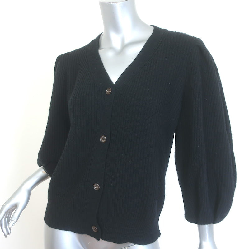 G. Label by goop Foster Ribbed Puff Sleeve Cardigan Black Wool Size Medium