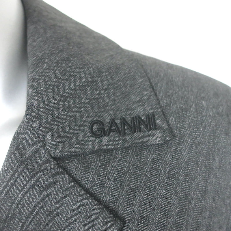 GANNI Draped Suiting Blazer Charcoal Tonal Stripe Size 34
