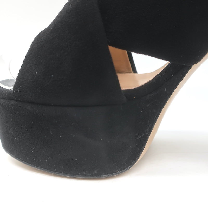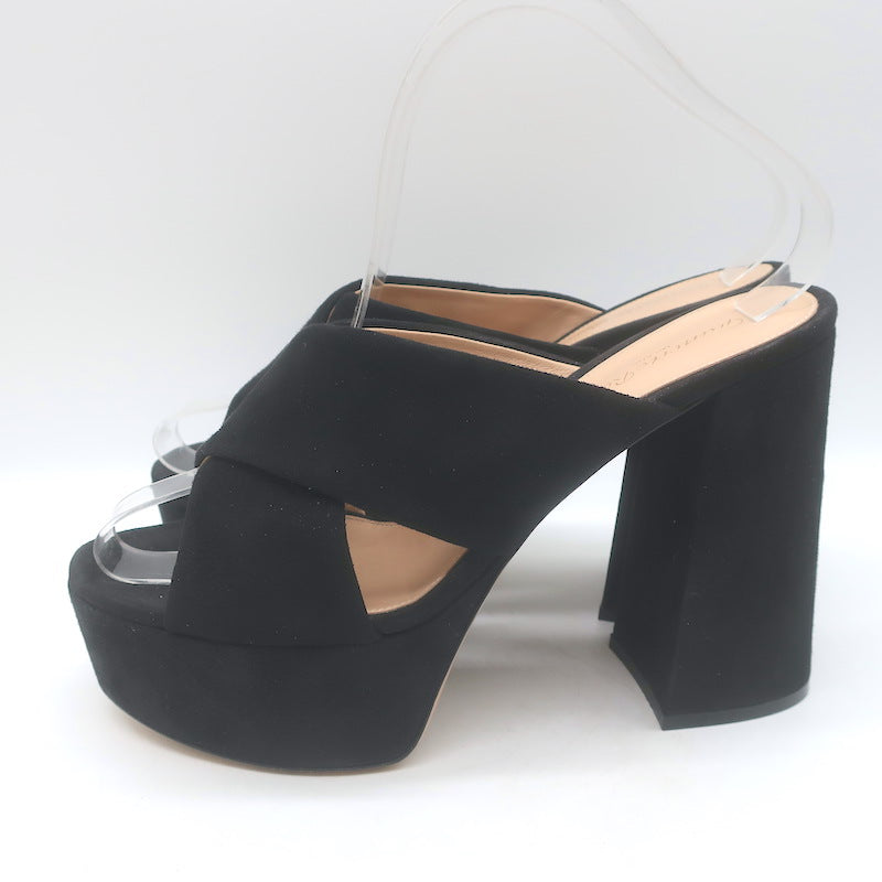 Gianvito Rossi 70 Crisscross Platform Slide Sandals Black Suede Size 39