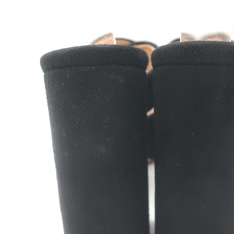 Pre-loved. Good condition. Areas of light wear along edges. Suede is slightly darkened on tips of toes. Small white scuff on interior...