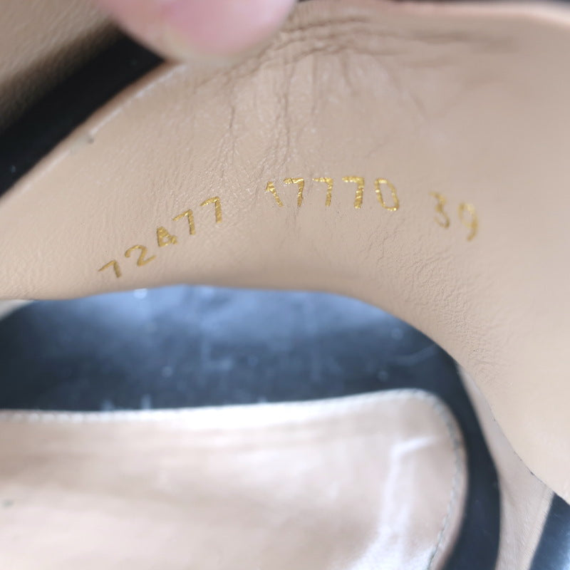 Hermes Legend Ankle Strap Wedge Sandals Black Leather Size 38.5