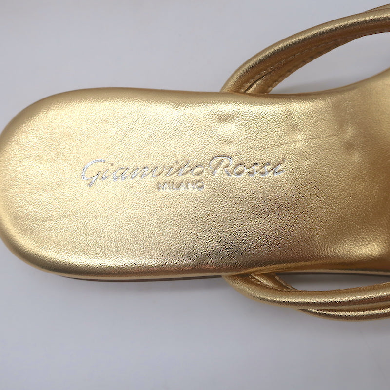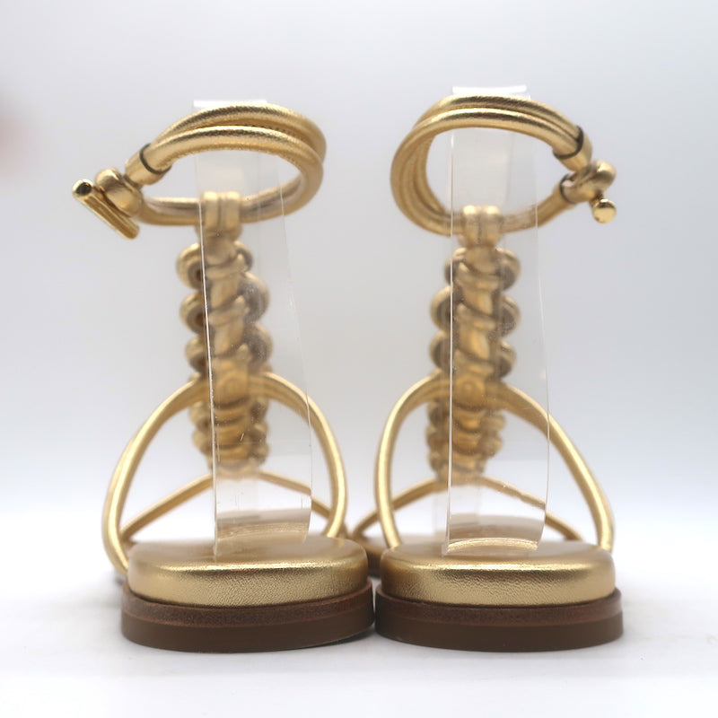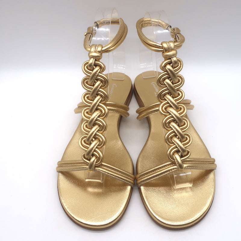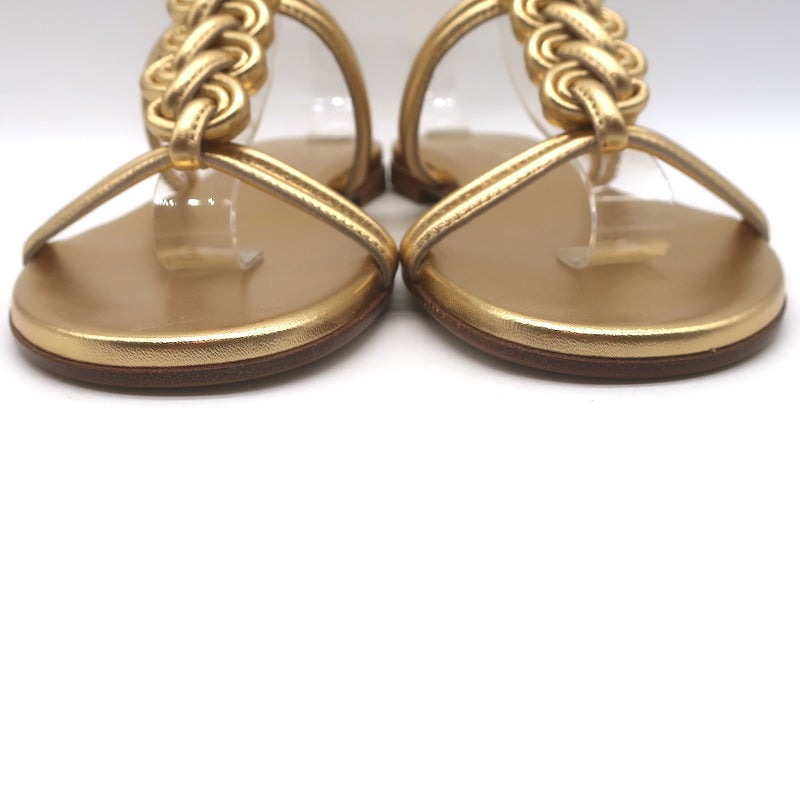Gianvito Rossi Capua Braided T-Strap Sandals Gold Metallic Leather Size 36.5 NEW