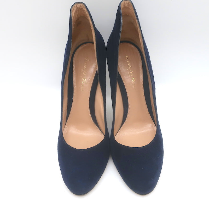 Gianvito Rossi Lyra 150 High-Back Pumps Navy Suede Size 38.5