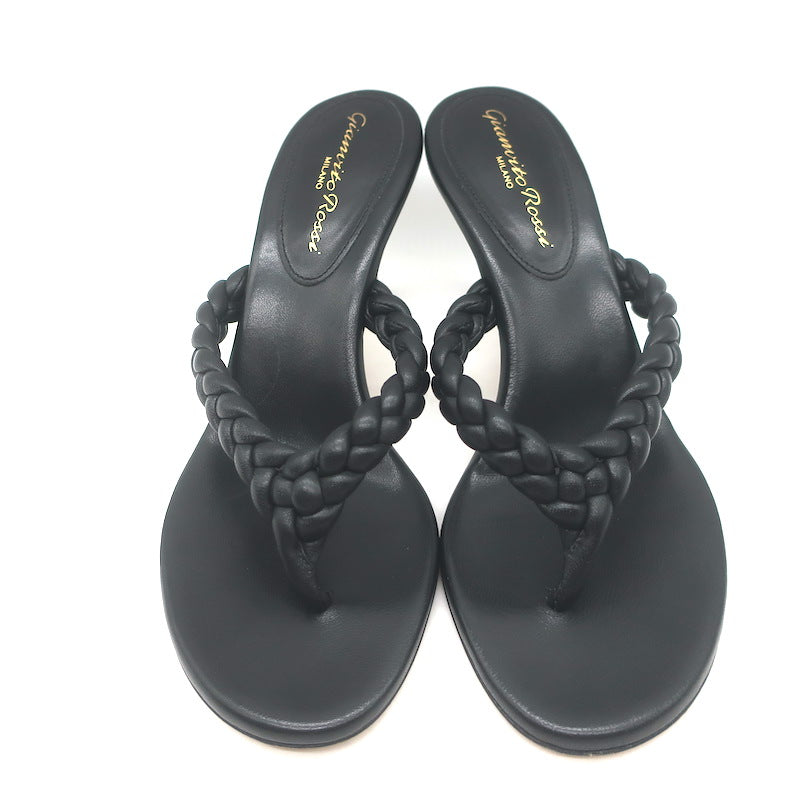 Gianvito Rossi Tropea 70 Braided Thong Sandals Black Leather Size 36.5