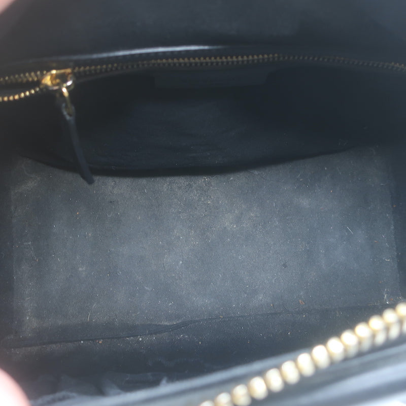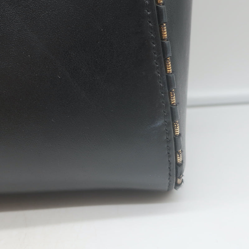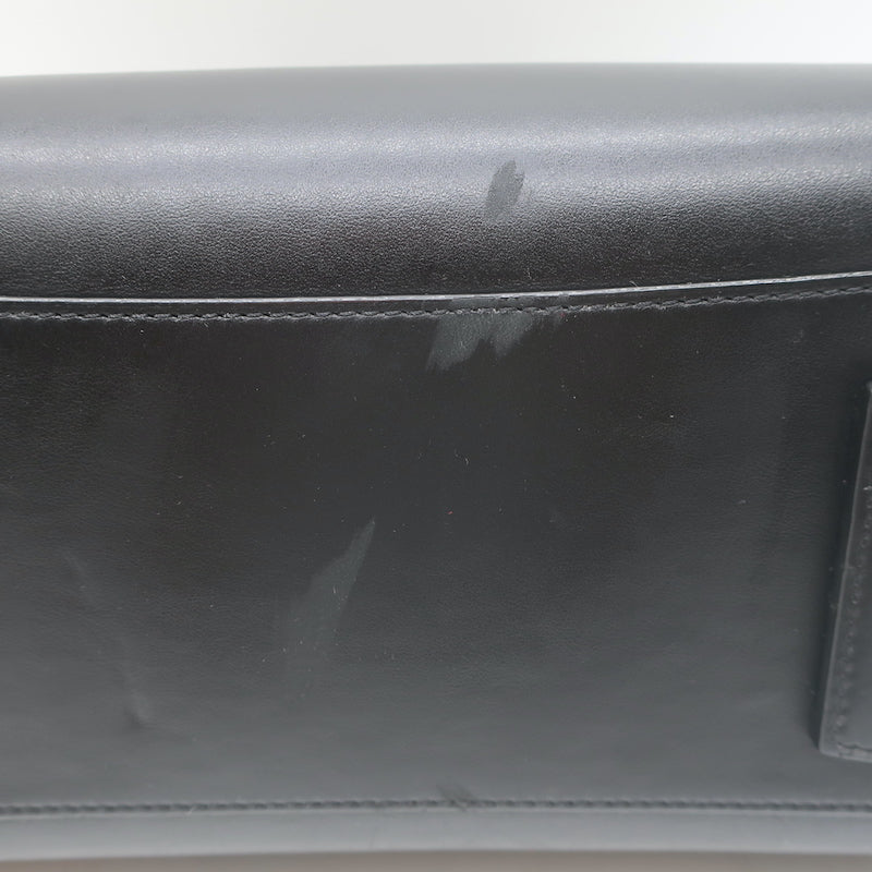 Pre-loved. Wear on bottom corners and on interior zipper pull. Light tarnish on hardware. Faint scuffs throughout leather. Comes with dust bag....