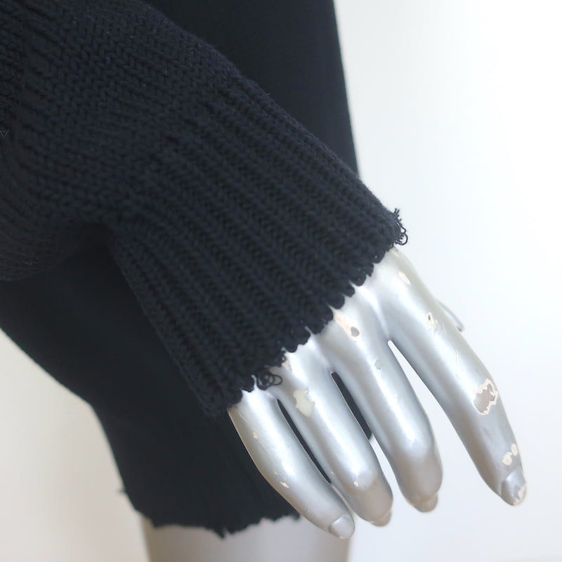 Emilio Pucci Ruffled Silk-Sleeve Knit Top Black Virgin Wool Size Small