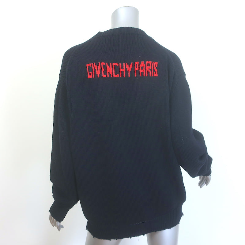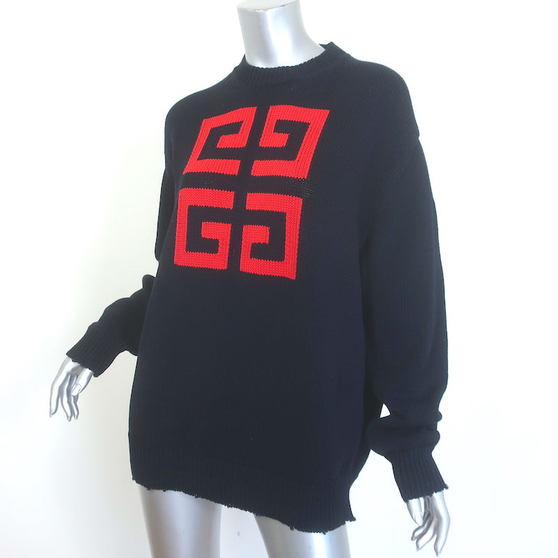 Givenchy Intarsia 4G Crewneck Sweater Navy Cotton Size Extra Small Unisex