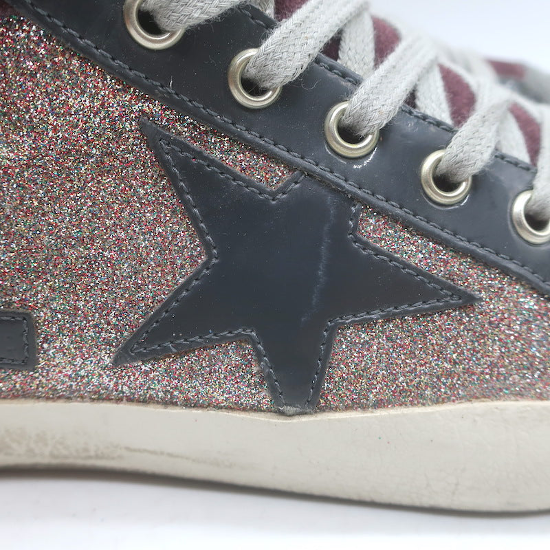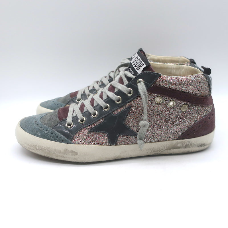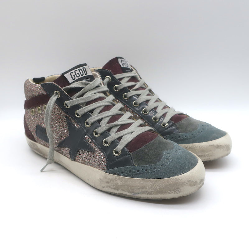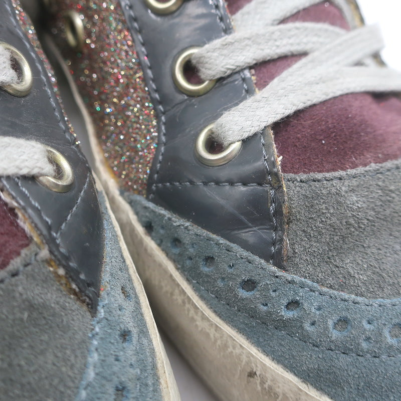 Golden Goose Mid Star Glitter Sneakers Purple/Gray Suede Size 40