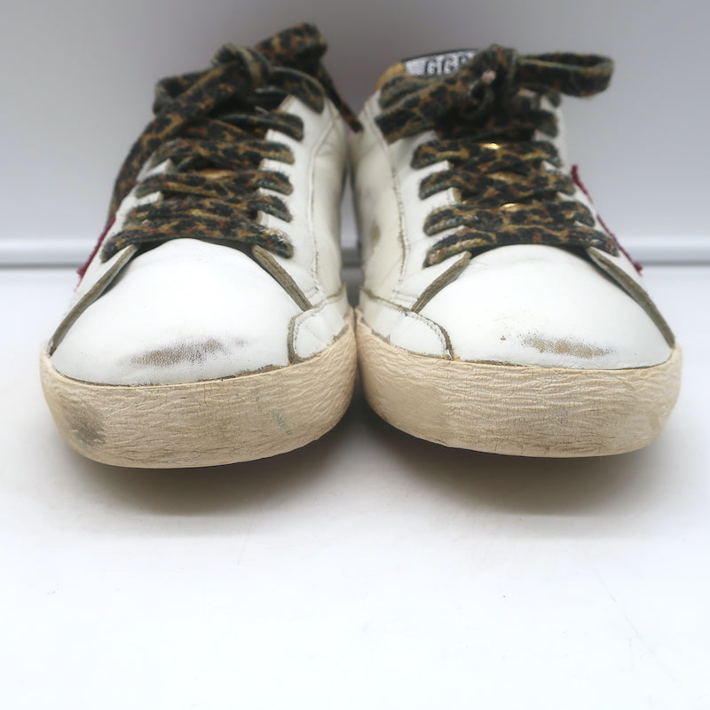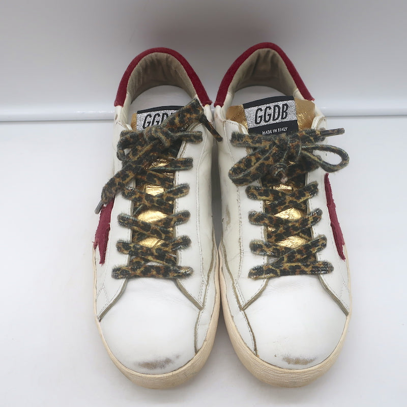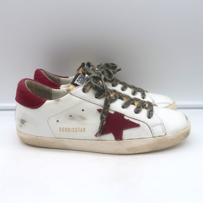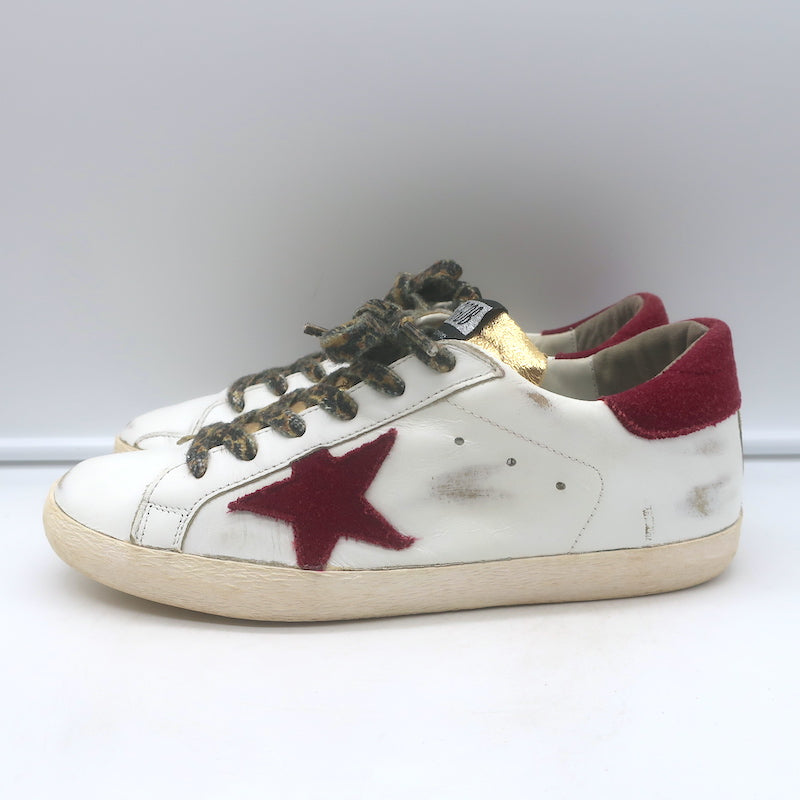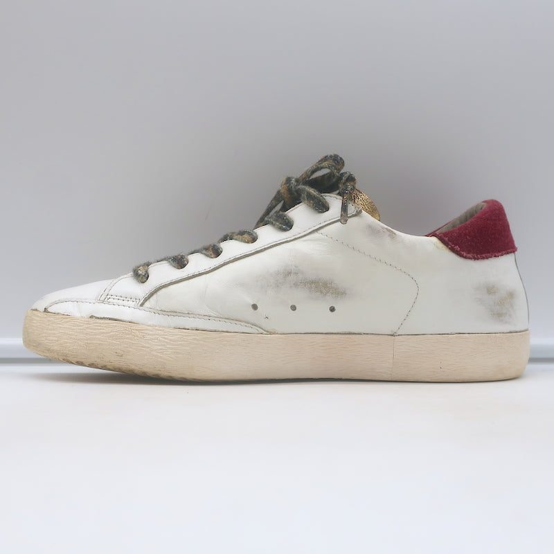 Golden Goose Superstar Sneakers White Leather & Burgundy Suede Size 38