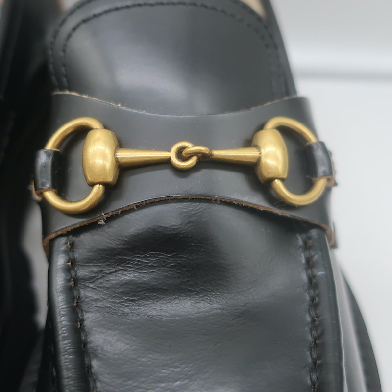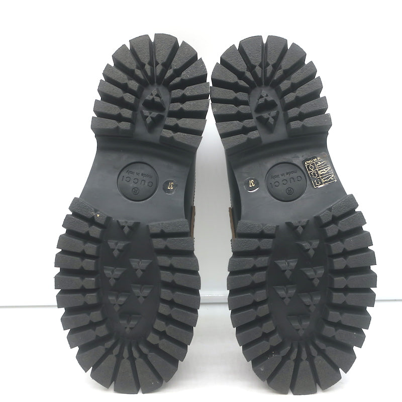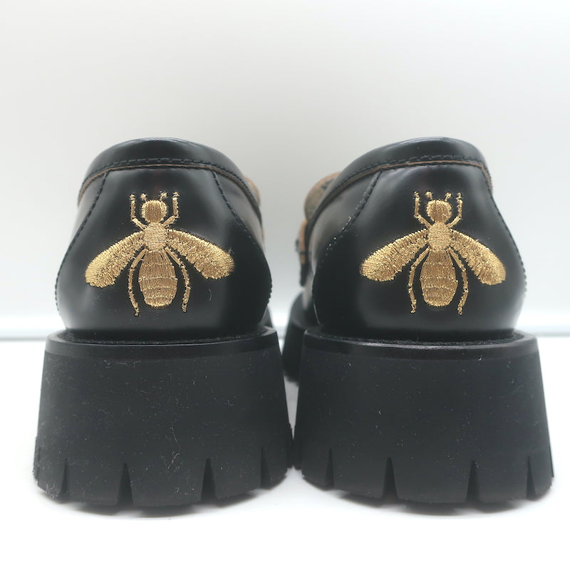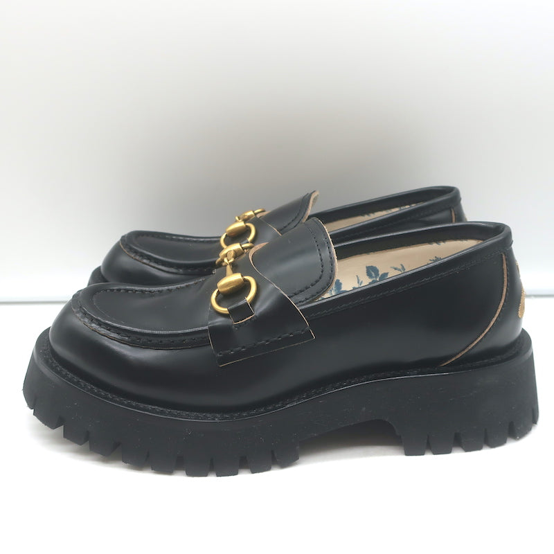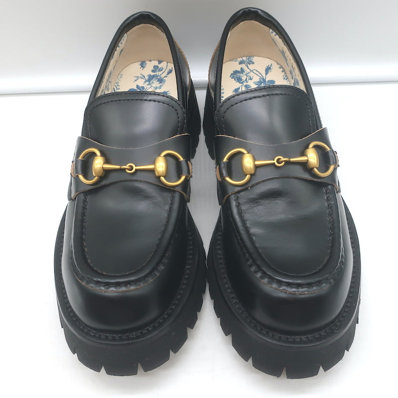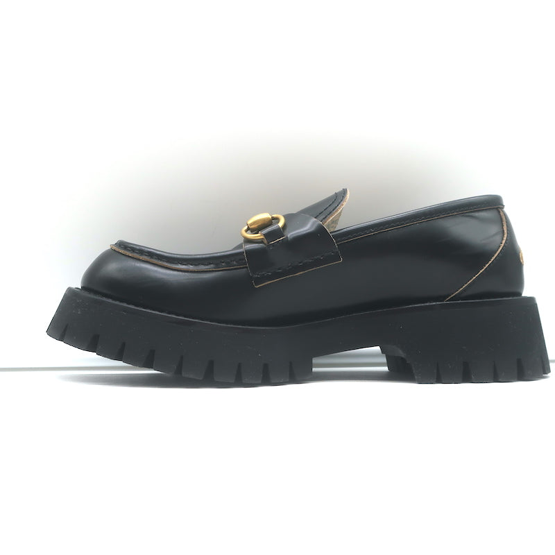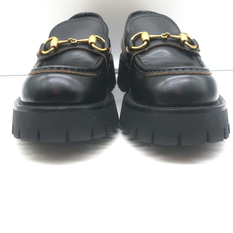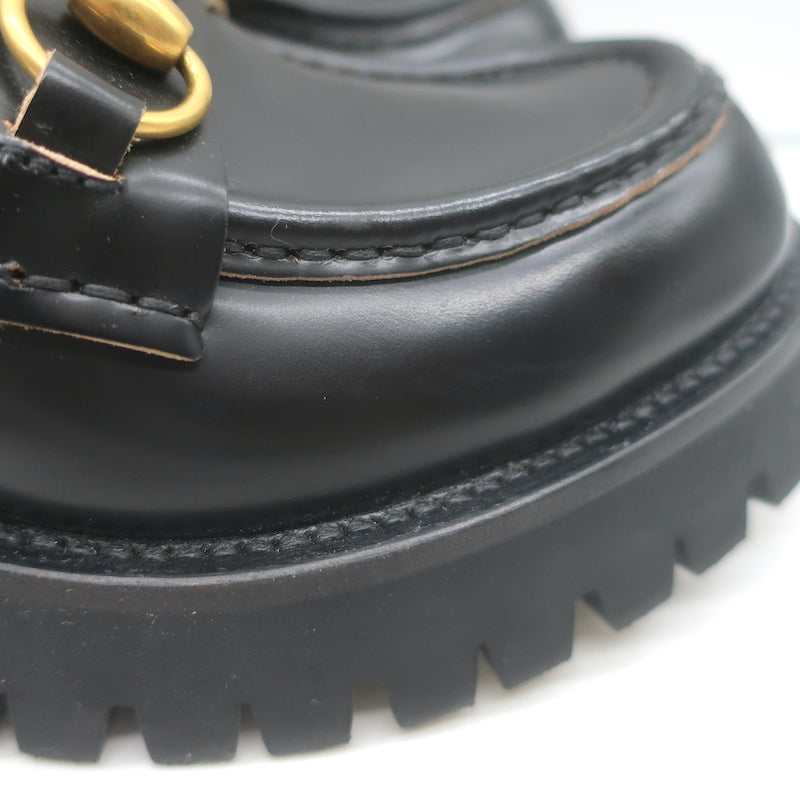 Gucci Harald Platform Lug Sole Horsebit Loafers Black Leather Size 37