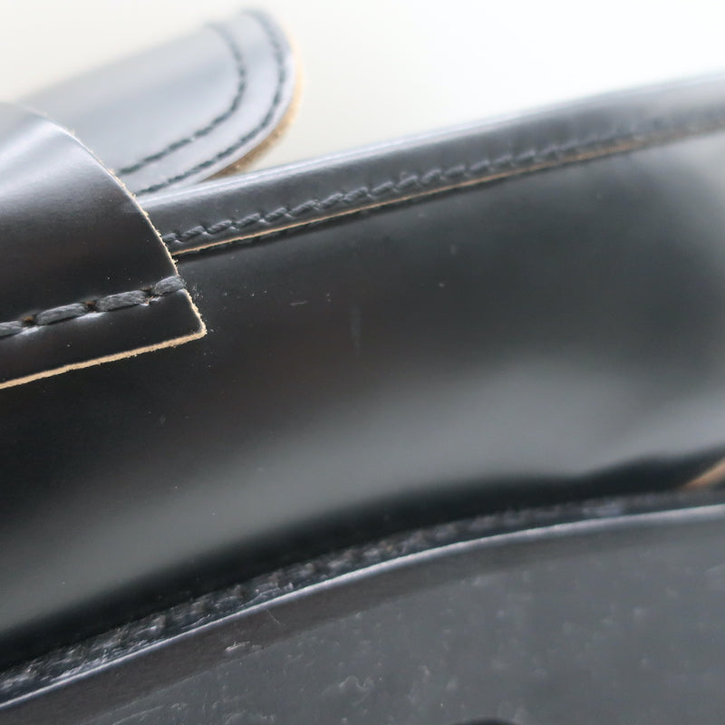 Gently worn. Good condition. No major flaws, wear along interior edges of toes. A few faint scuffs on leather. Small scratch in...