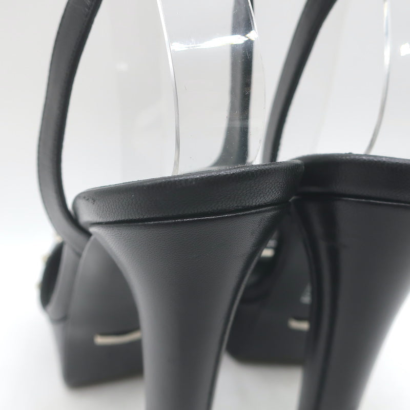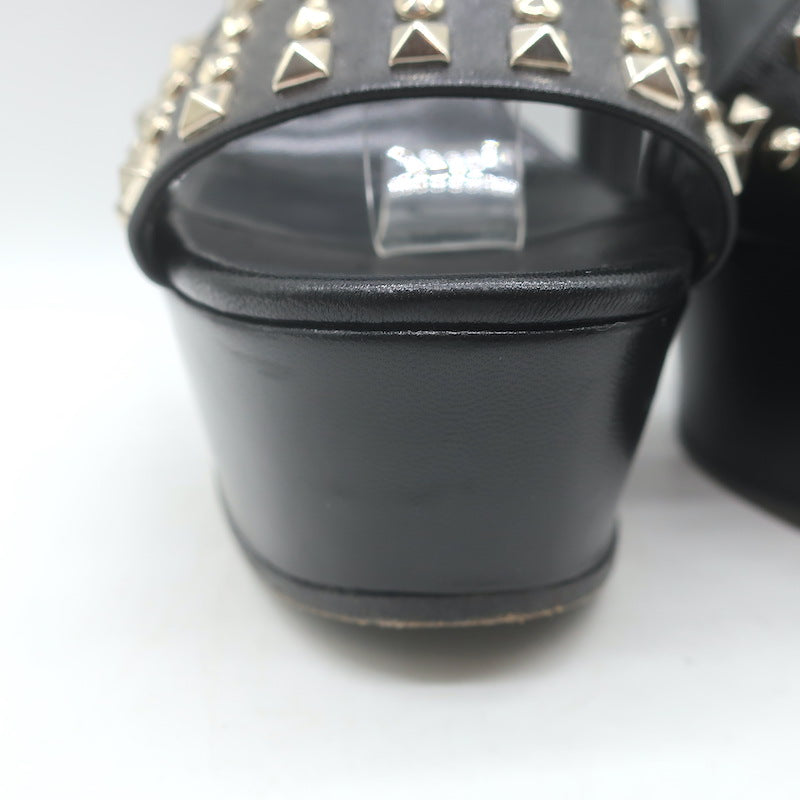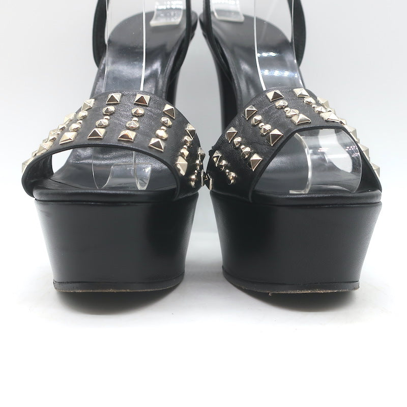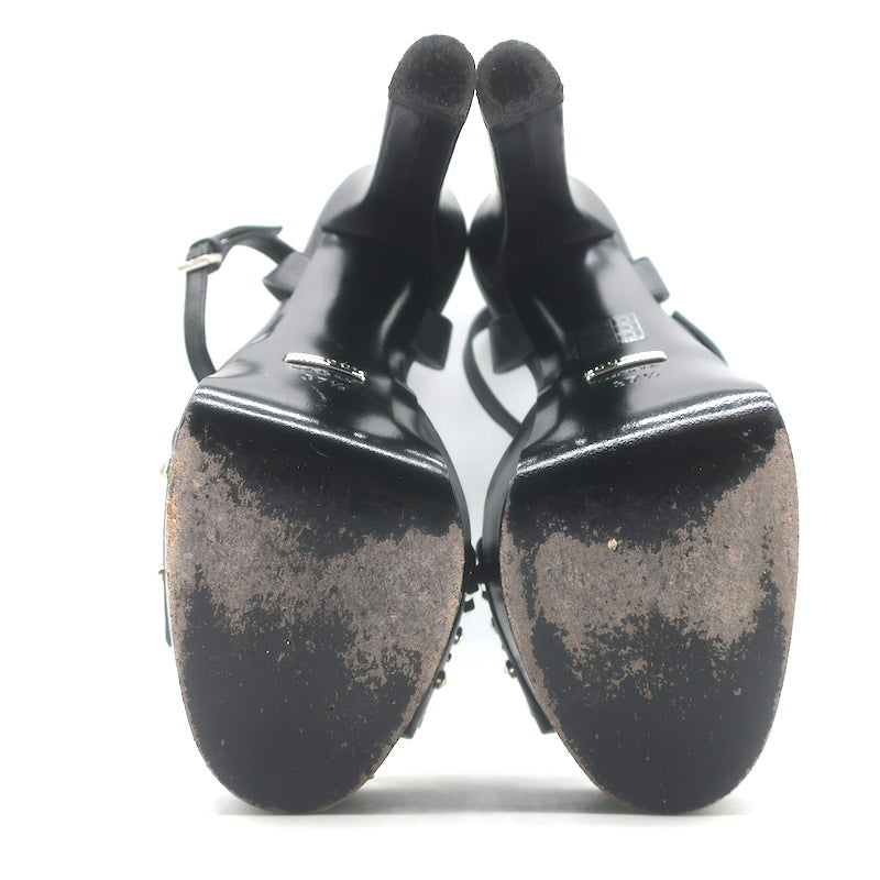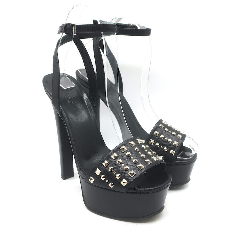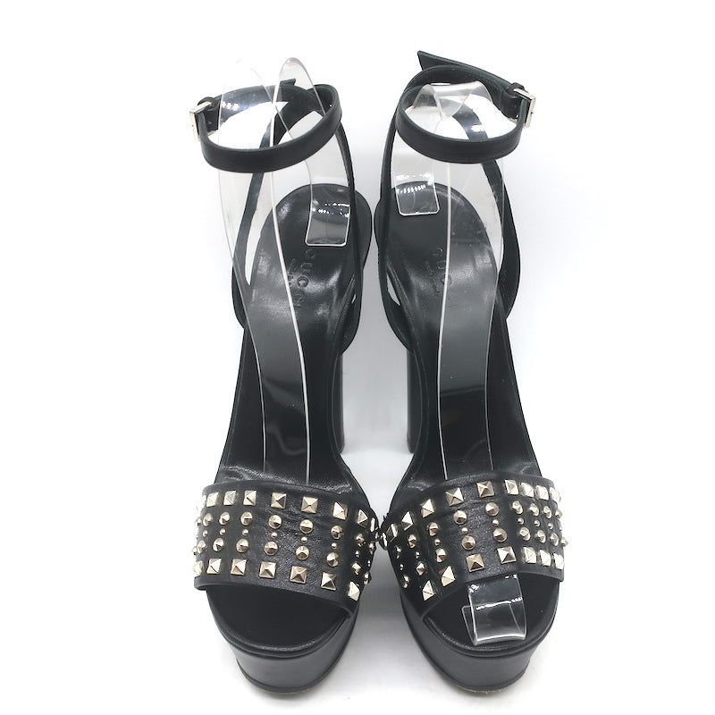 Gucci Leila Studded Platform Ankle Strap Sandals Black Leather Size 37.5