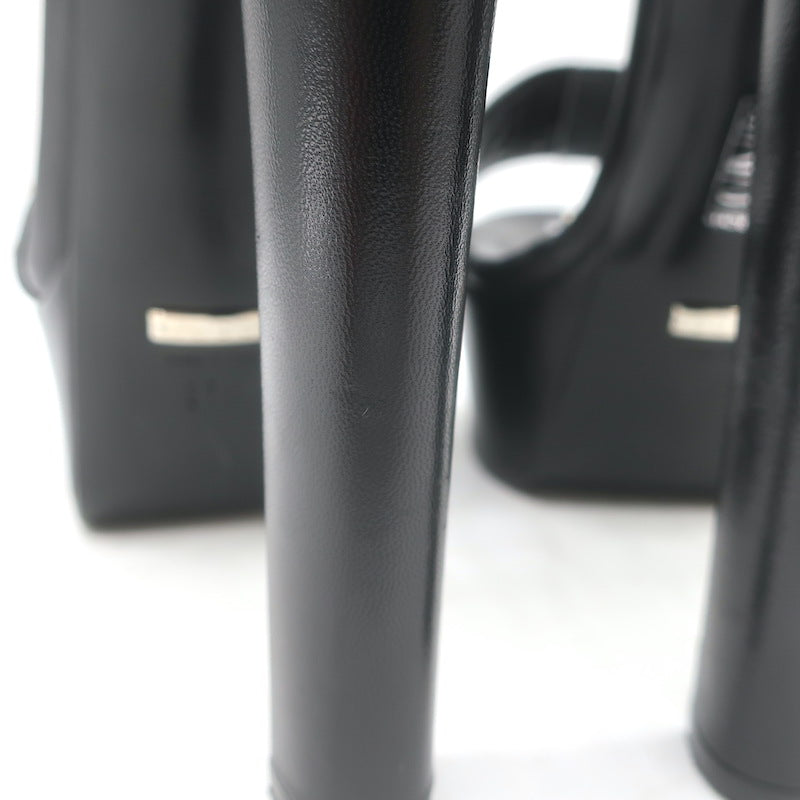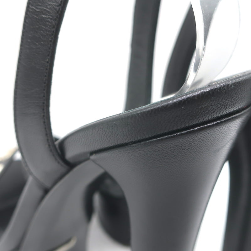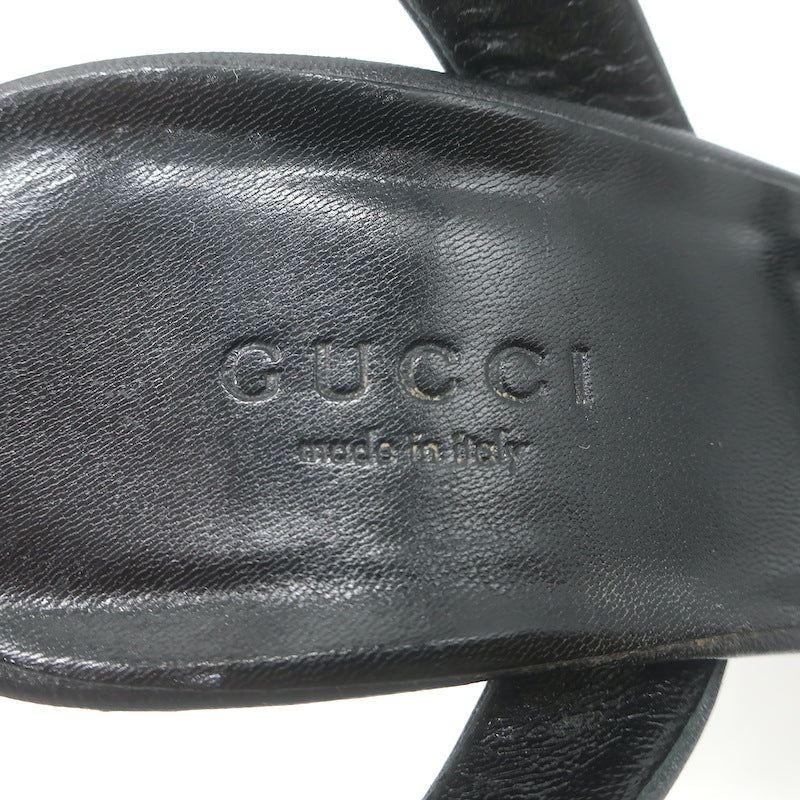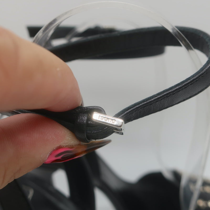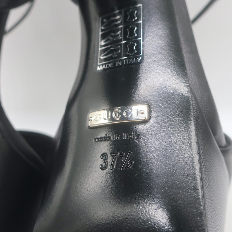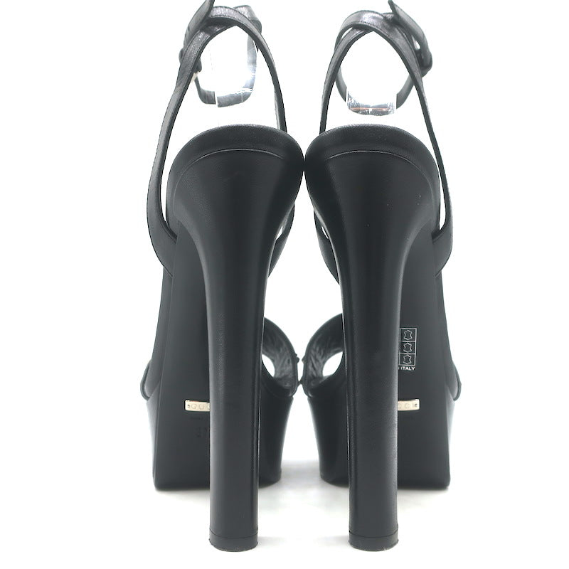 Gucci Platform Ankle Strap Sandals Black Leather Size 37.5