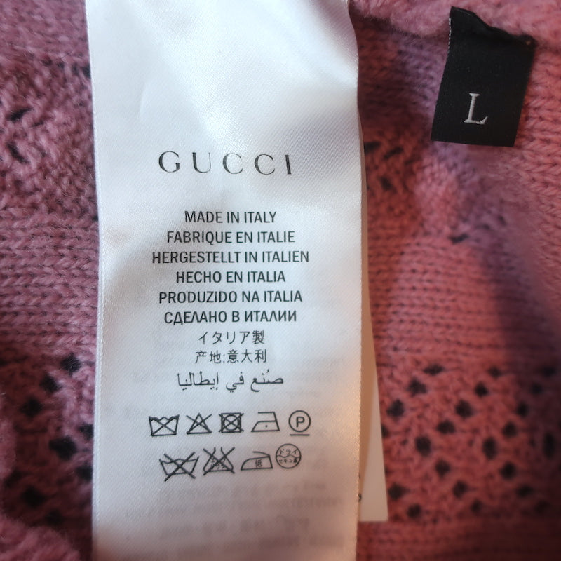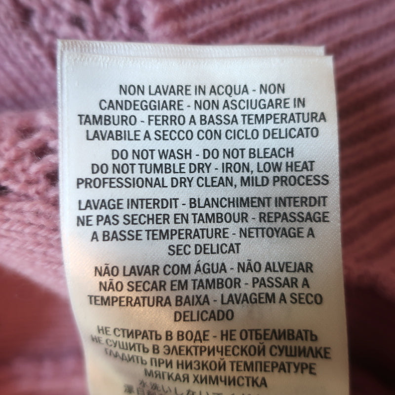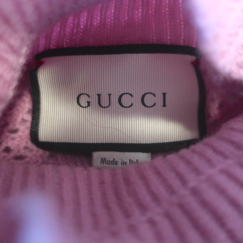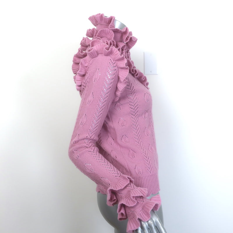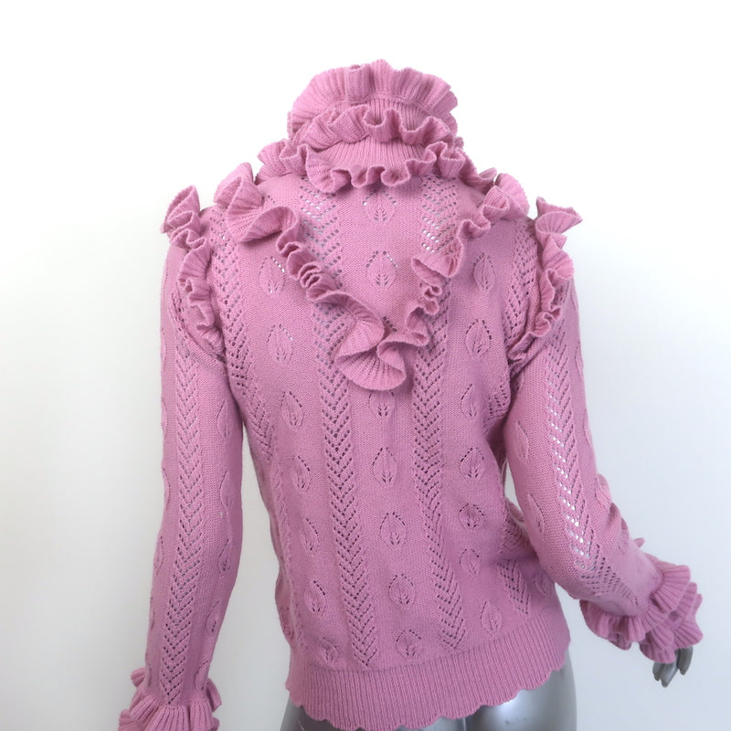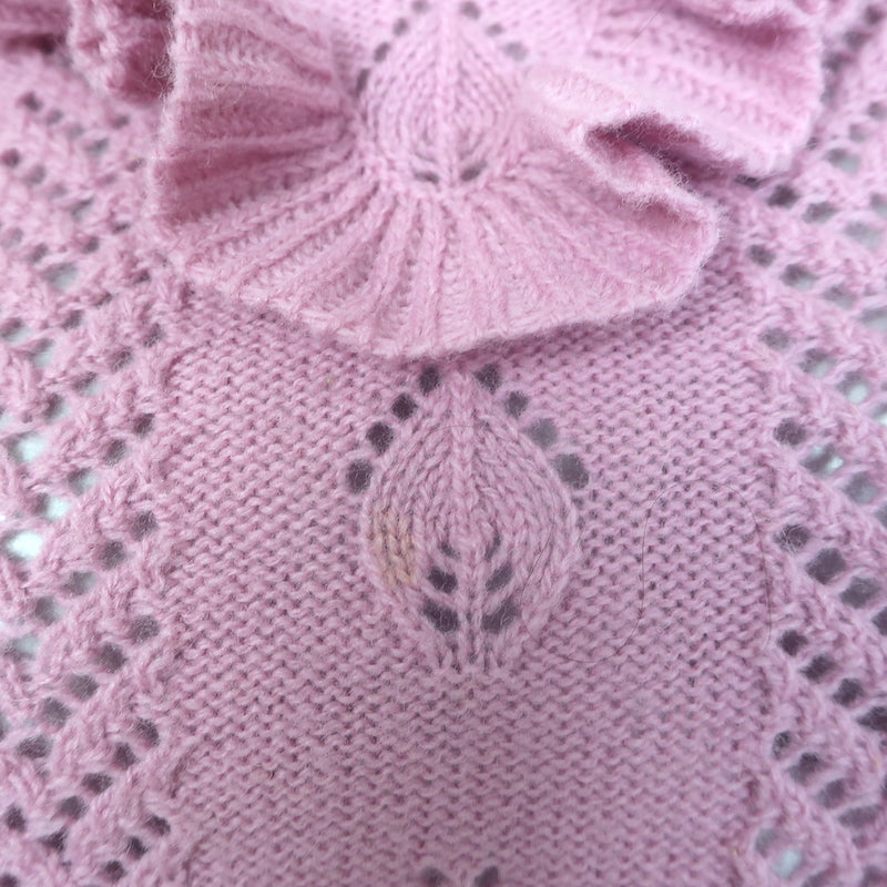 Gucci Ruffled Pointelle Knit Turtleneck Sweater Pink Wool-Blend Size Large