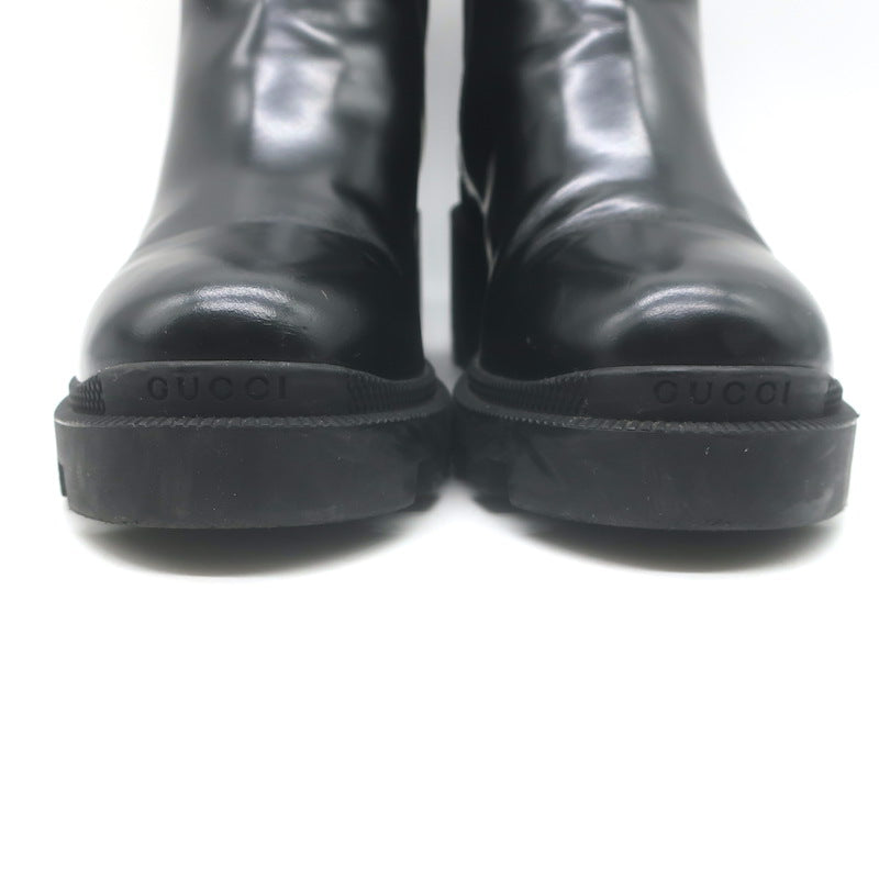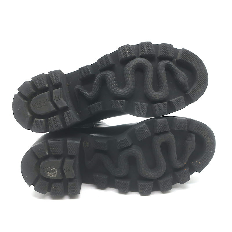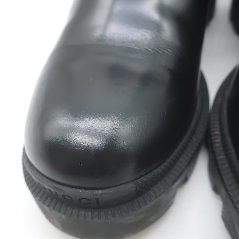 Gucci Trip Lug Sole Chelsea Boots Black Polished Leather Size 36.5