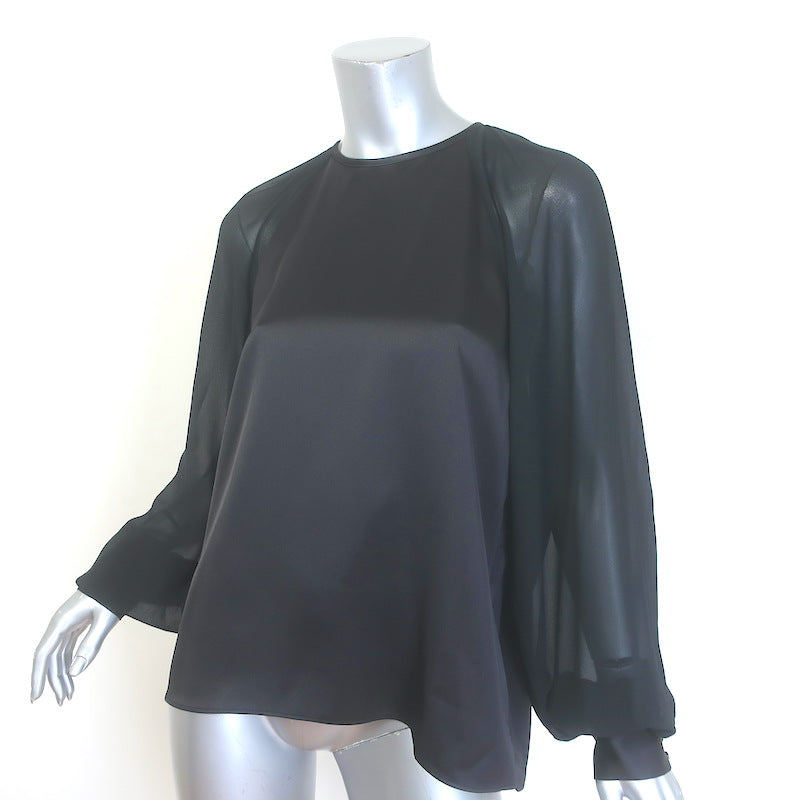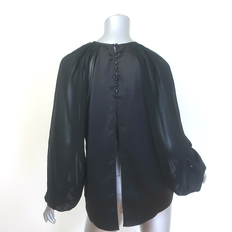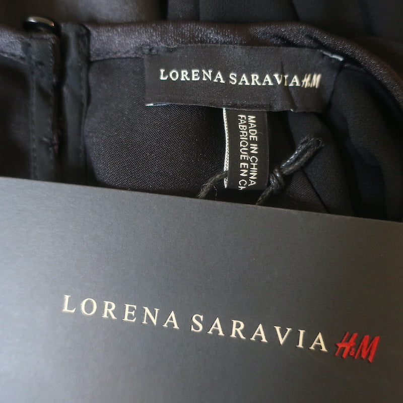 H&M x Lorena Saravia Chiffon-Sleeve Open Back Satin Blouse Black Size Medium NEW