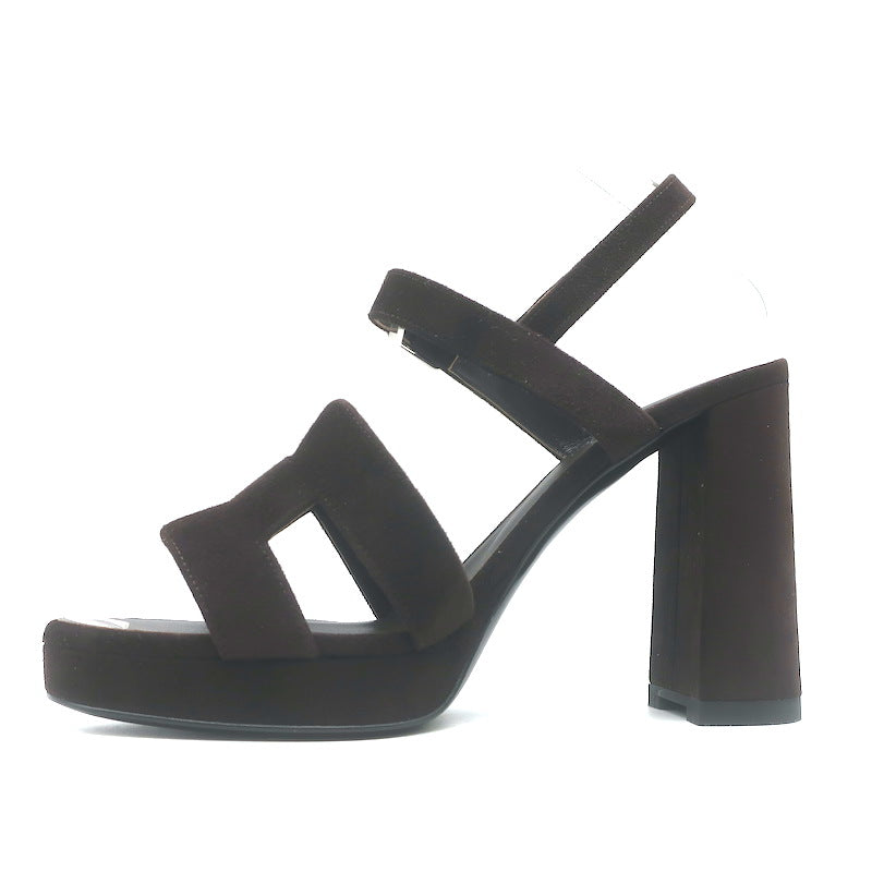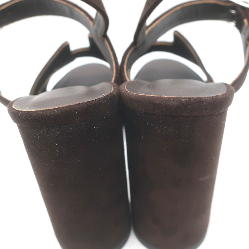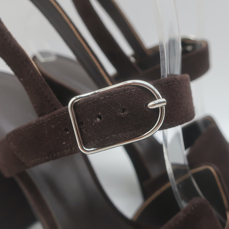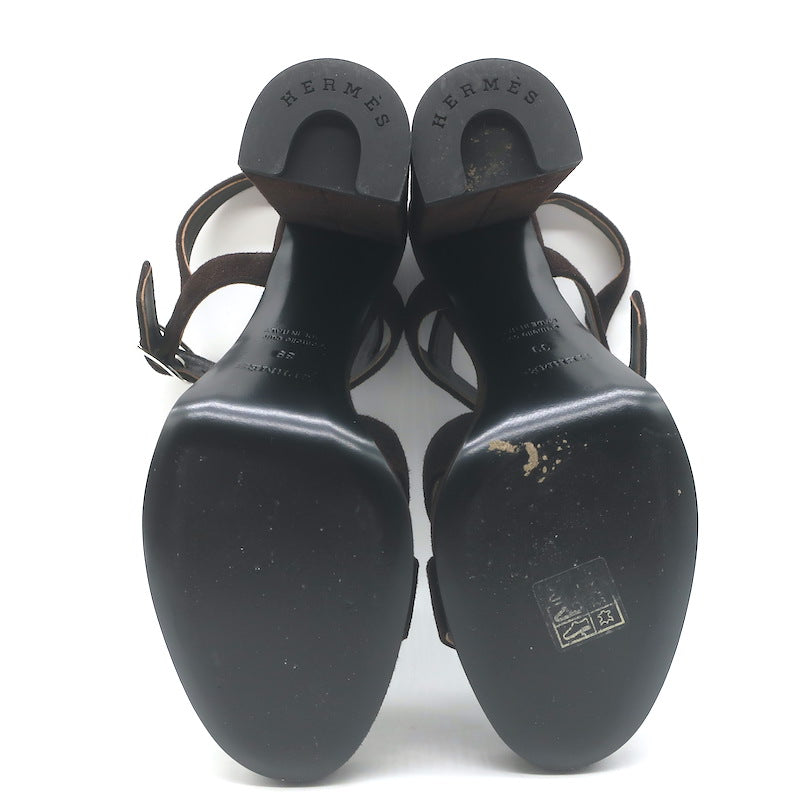 Hermes Jazz 90 Platform Ankle Strap Sandals Dark Brown Suede Size 39