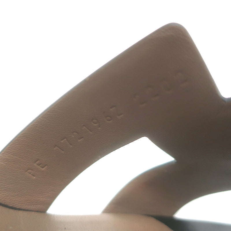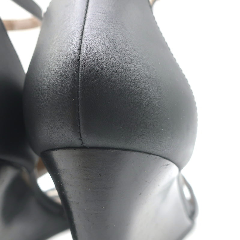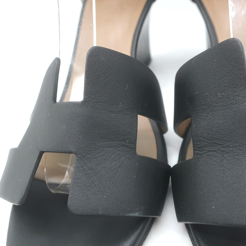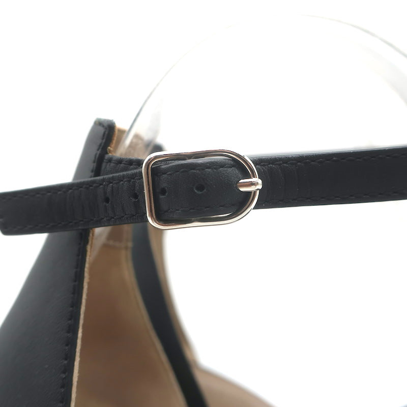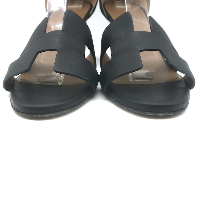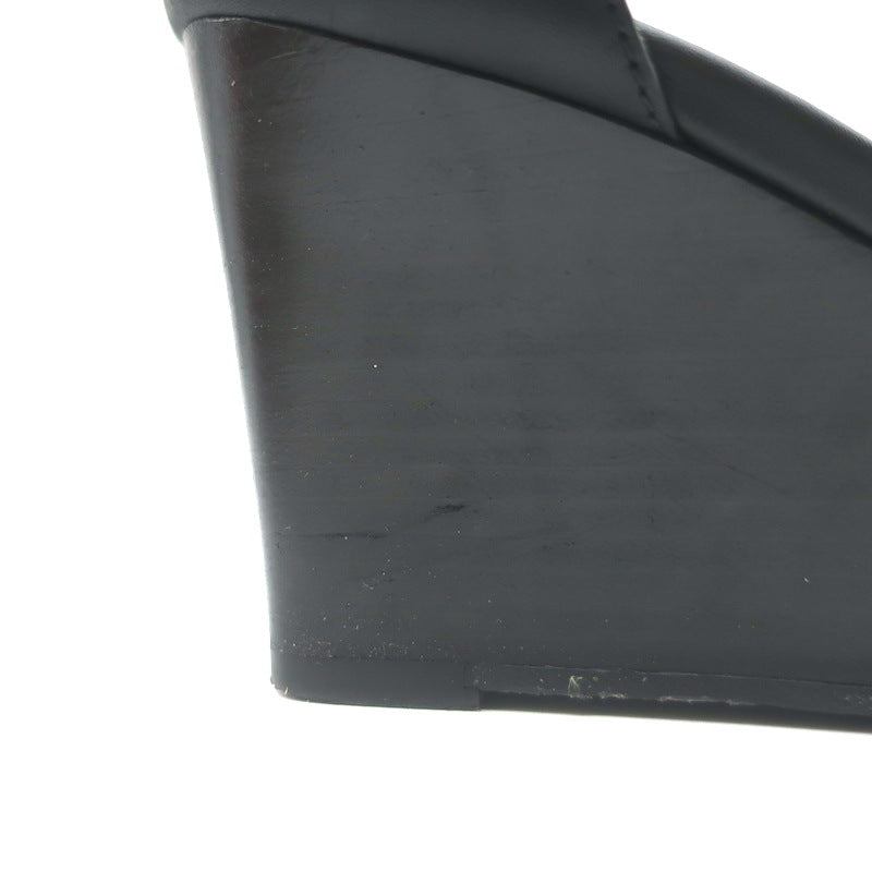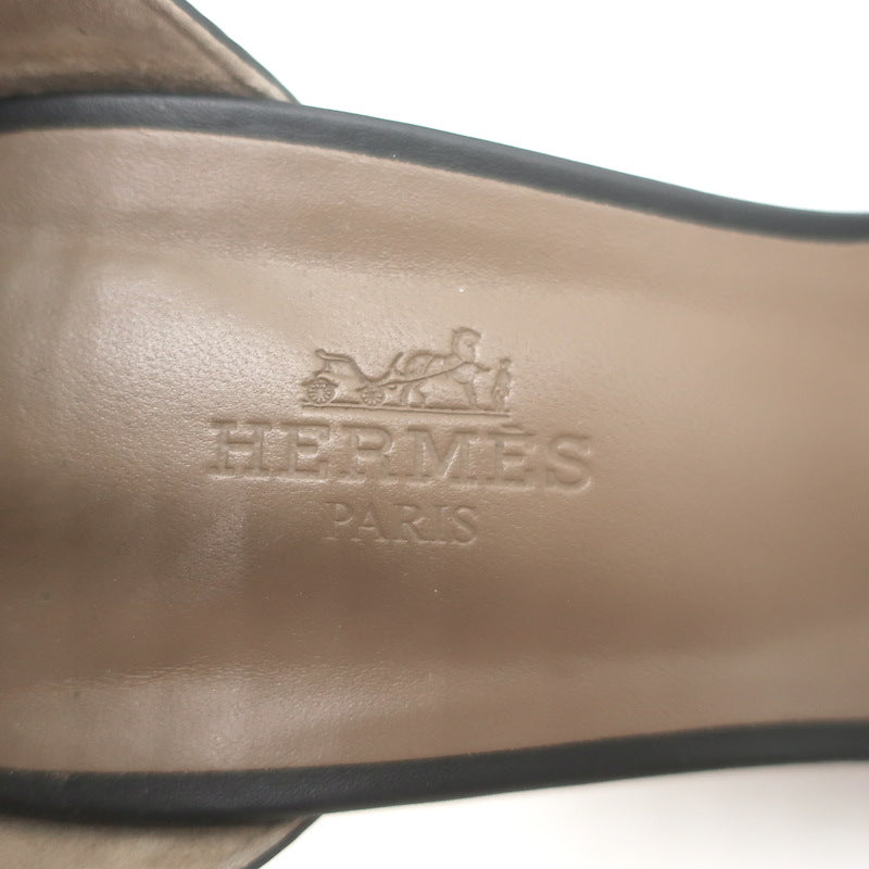 Hermes Legend Ankle Strap Wedge Sandals Black Leather Size 38.5