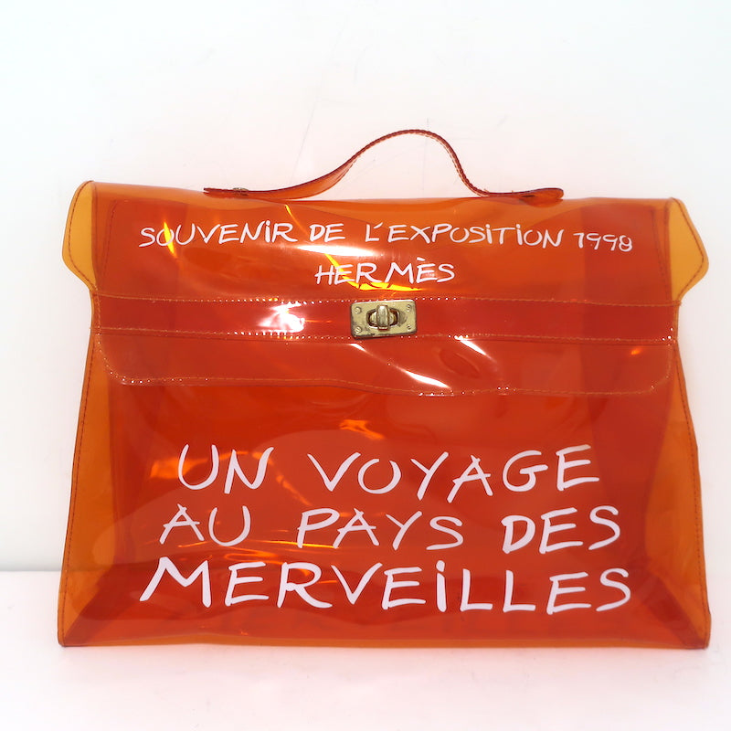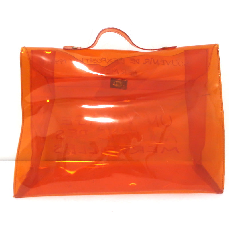 Hermes Souvenir De L'Exposition Vinyl Kelly Bag Transparent Orange