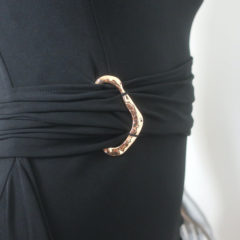 L'Agence Metallic Draped Long Sleeve Gown Gold Stretch Knit Size Extra...