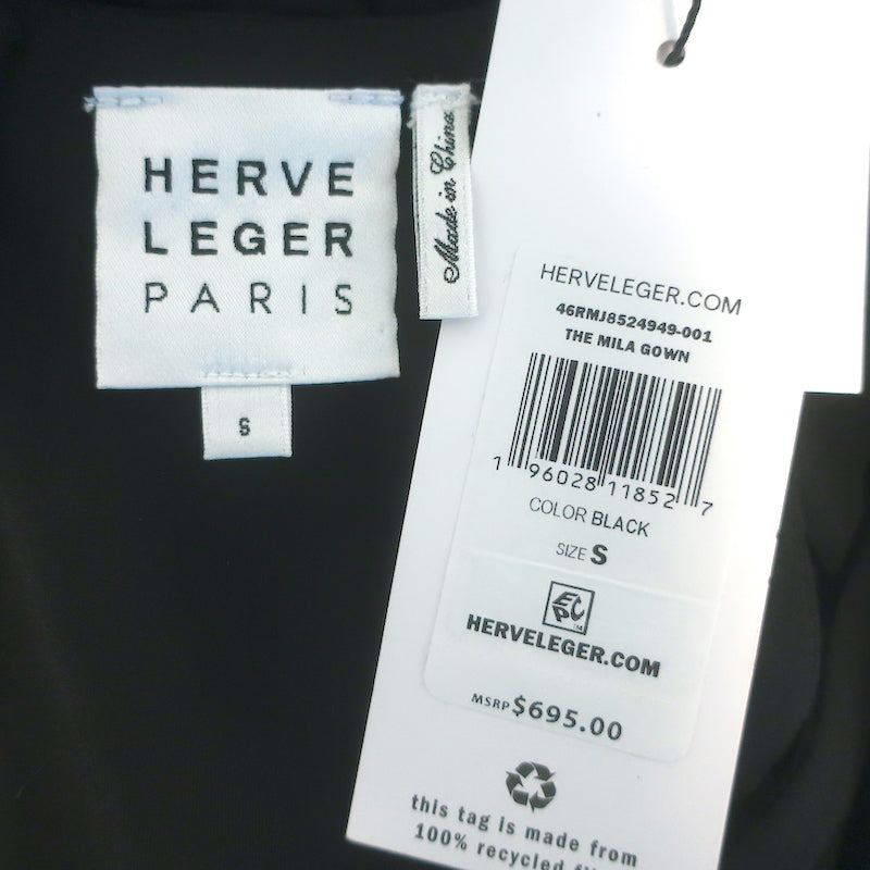 Herve Leger Mila Gown Black Stretch Jersey Size Small Sleeveless Maxi Dress NEW