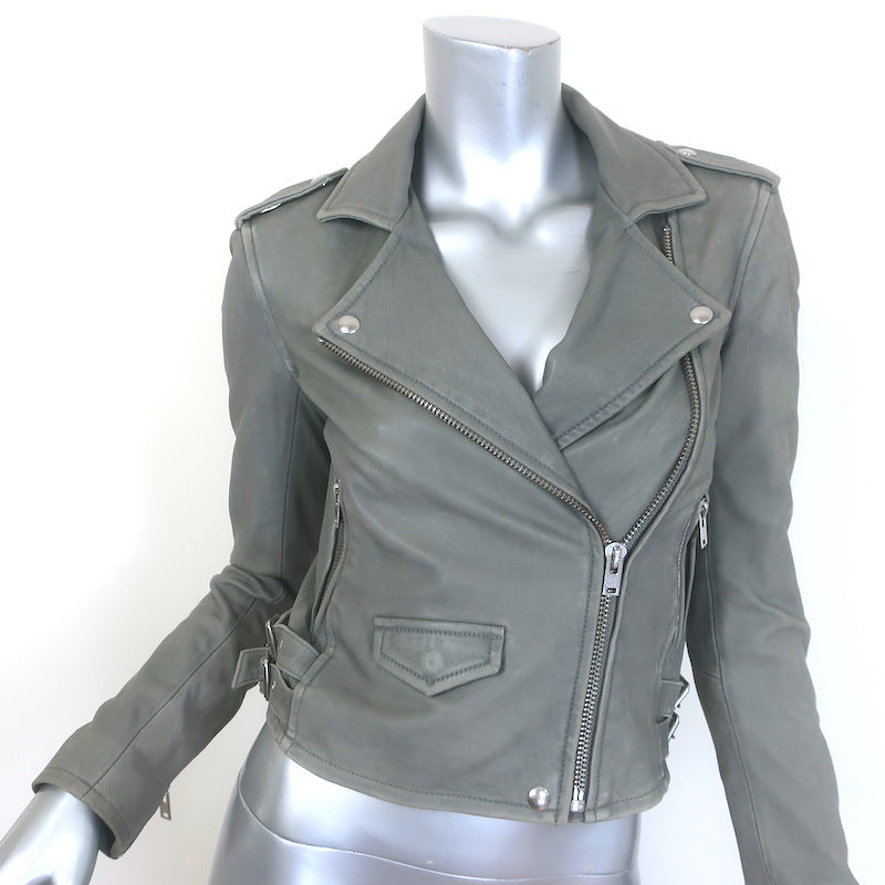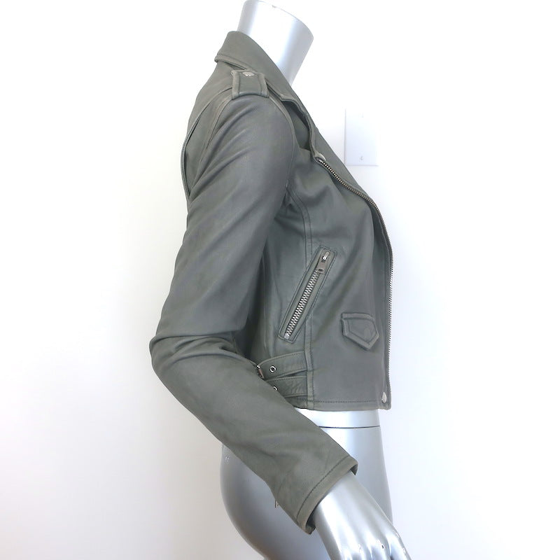 IRO Ashville Leather Motorcycle Jacket Gray Size 34