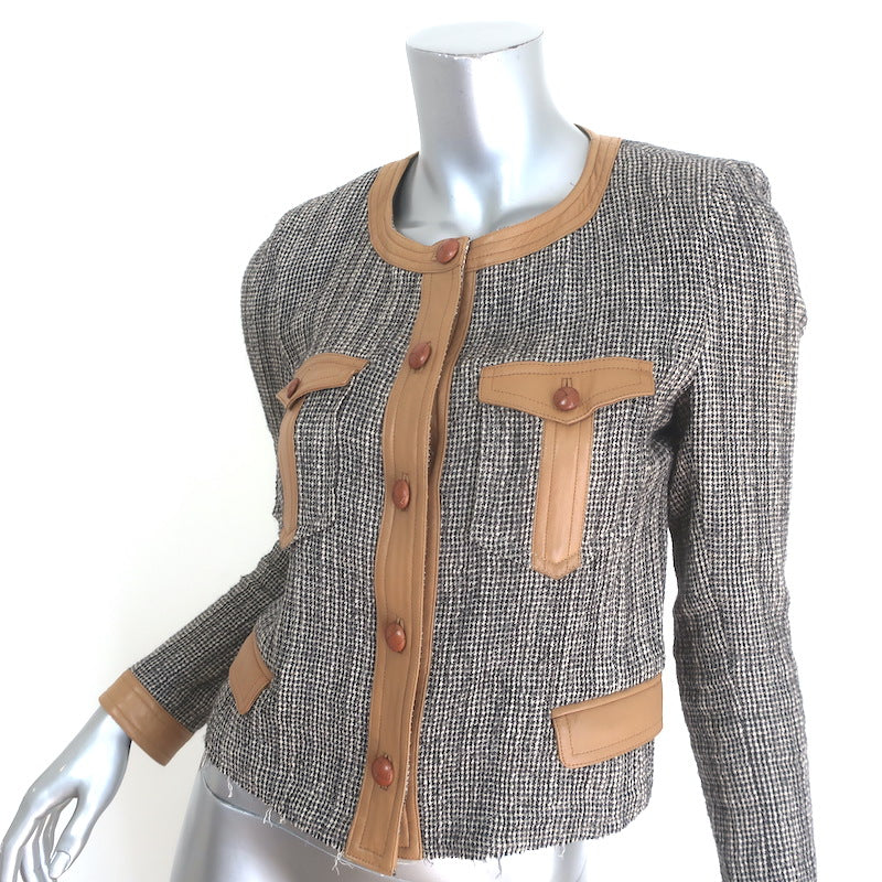 Isabel Marant Etoile Kacie Leather-Trim Tweed Jacket Gray/Camel Size 40