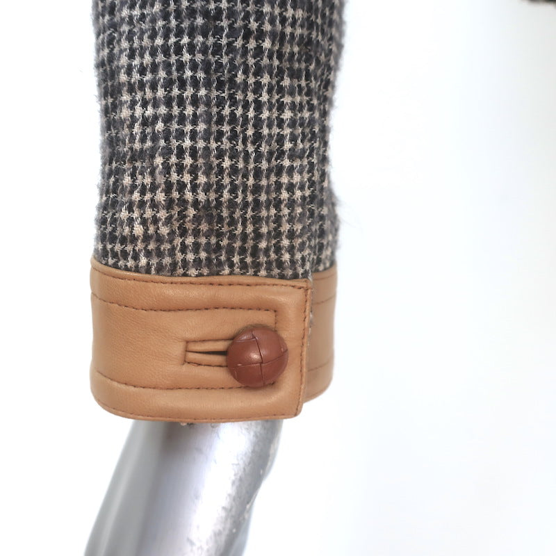 Anna Sui Houndstooth Plaid Tie-Neck Zip Up Jacket Gray Cotton-Blend Si...
