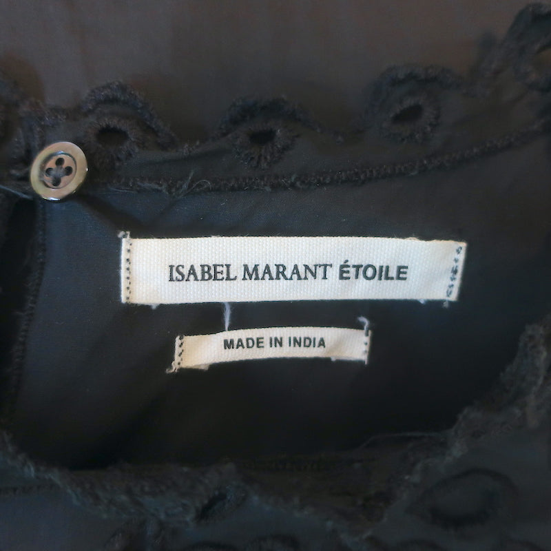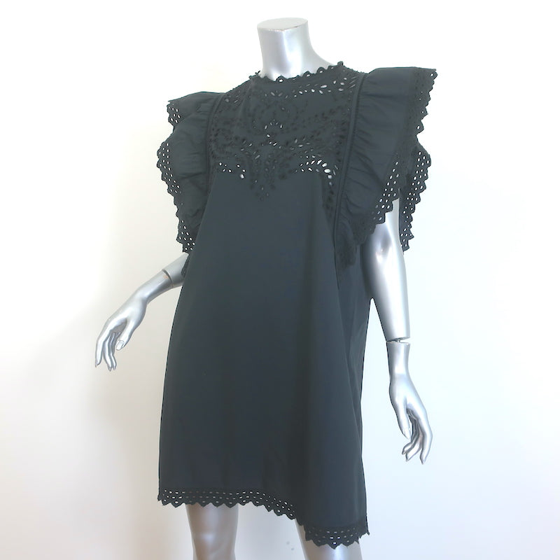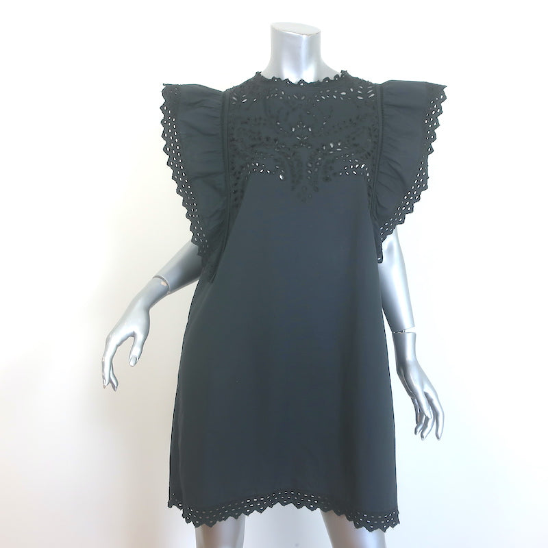 Isabel Marant Etoile Scarla Broderie Anglaise Mini Dress Black Cotton Size 38