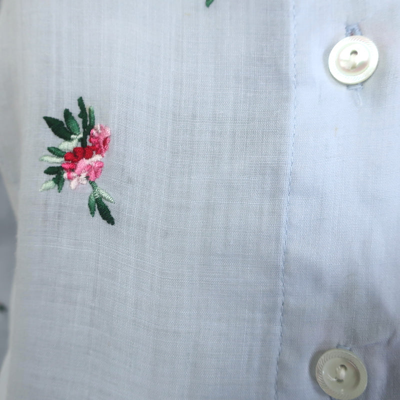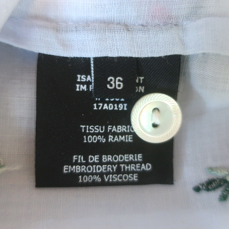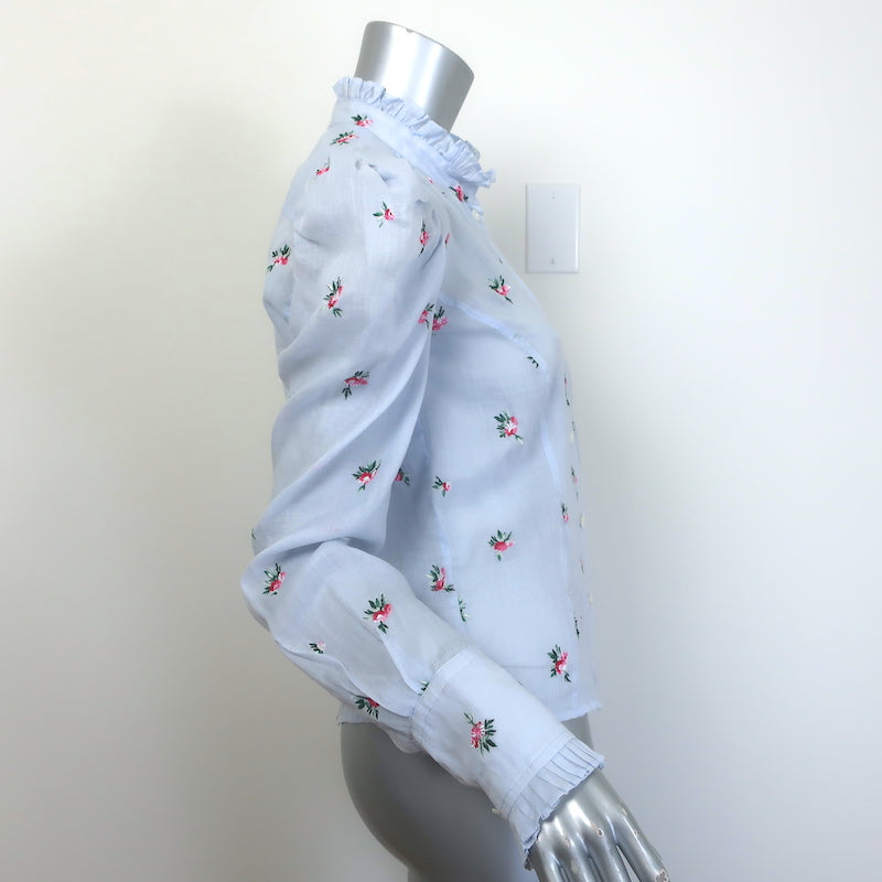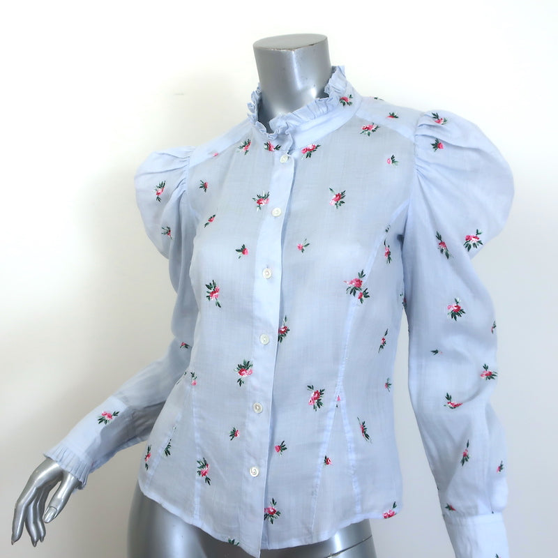 Isabel Marant Utah Floral-Embroidered Puff Sleeve Blouse Light Blue Size 36