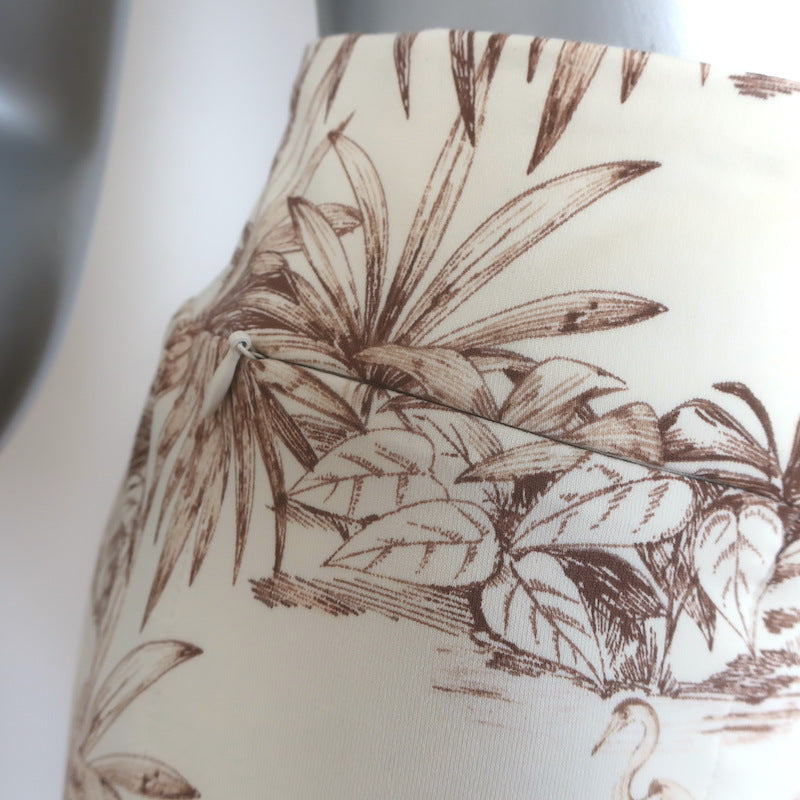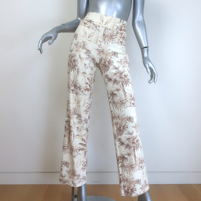 J.McLaughlin Toile Flared Pants Ivory/Brown Printed Stretch Jersey Size Medium