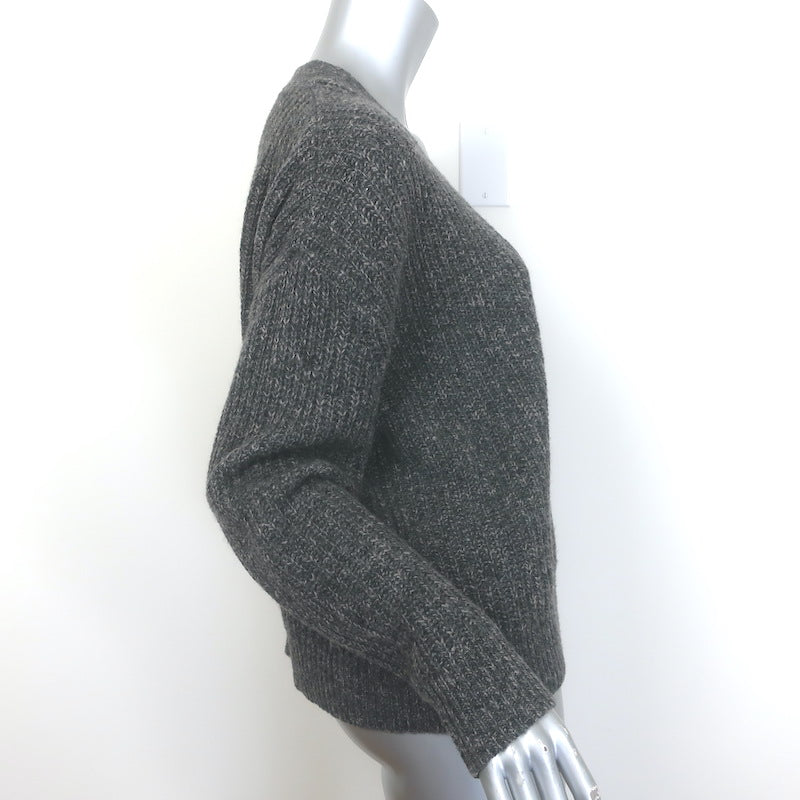 FRAME Ruched Sleeve Cashmere Sweater Dark Heather Gray Size Small
