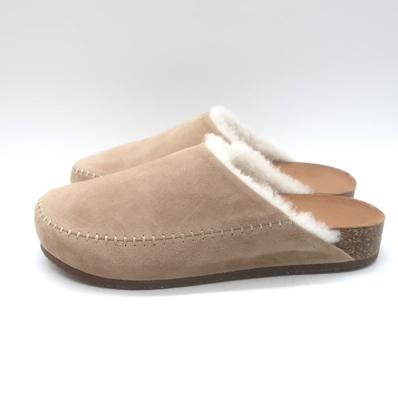 Jenni Kayne Shearling-Lined Moc Clogs Taupe Suede Size 38