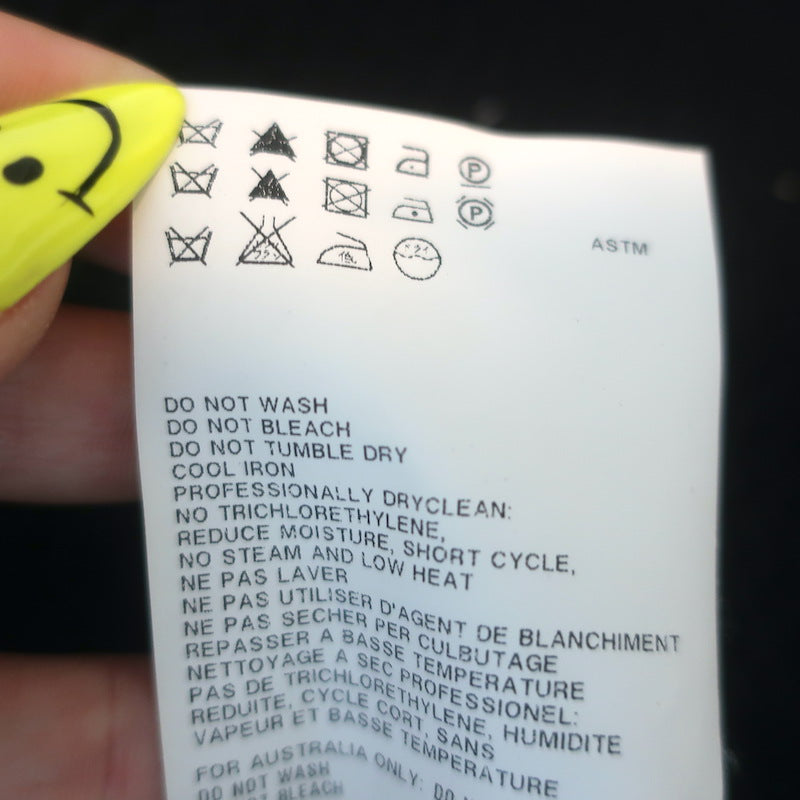 Pre-loved. A few faint white smudges should come out with cleaning. Zipper at left hip. 57% acetate, 43% viscose -**-