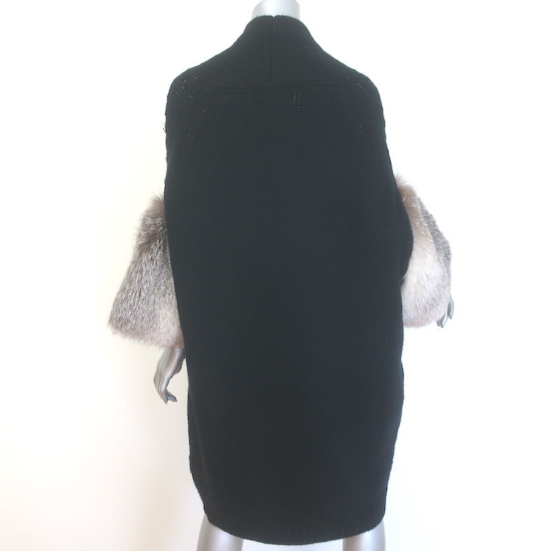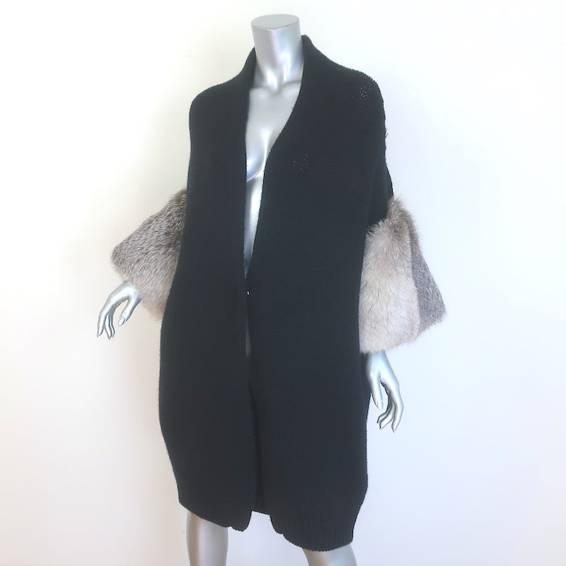Jil Sander Cashmere Long Cardigan with Fox Fur Cuffs Black Size Medium