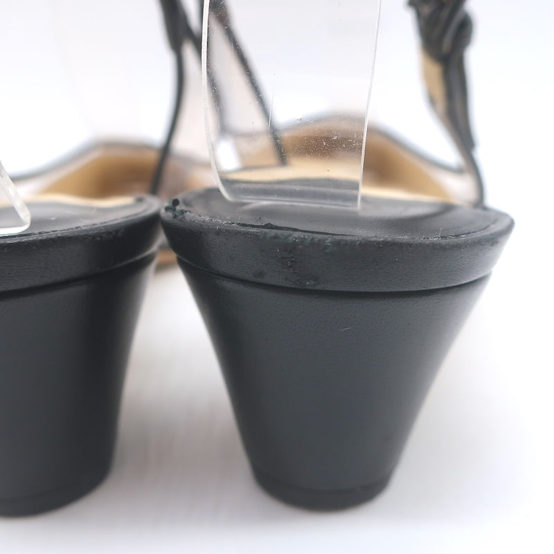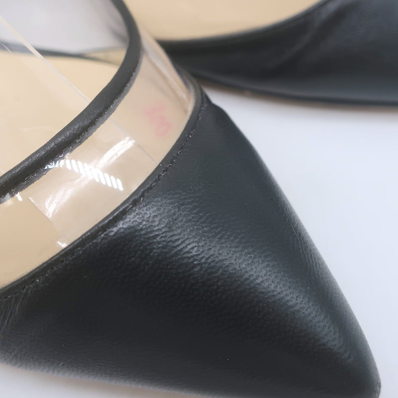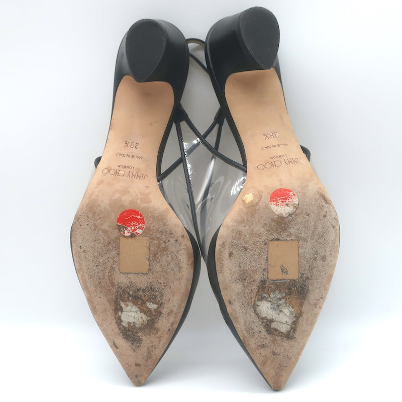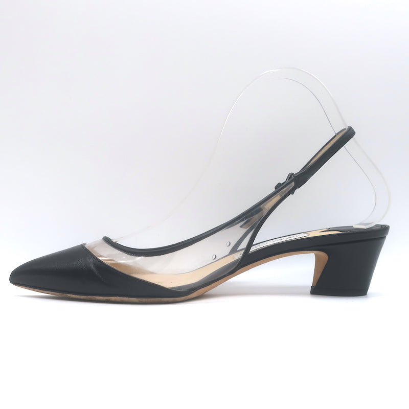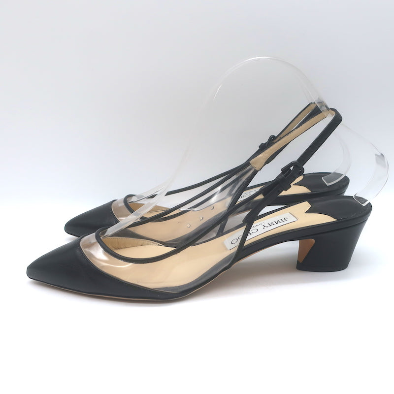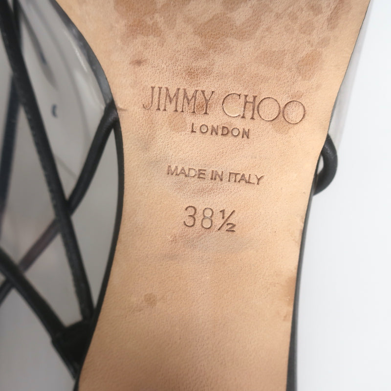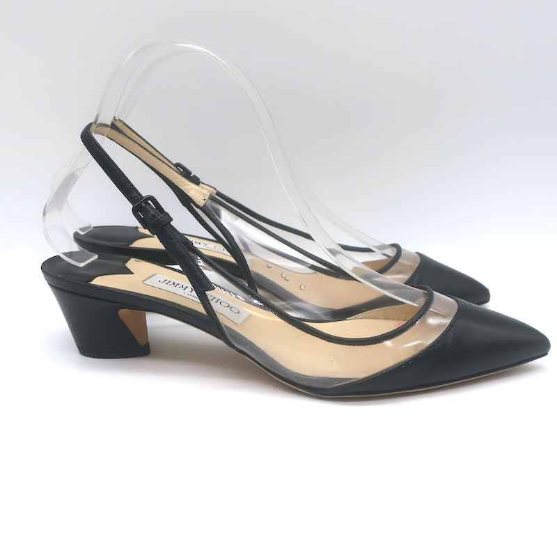 Jimmy Choo Gemma 40 Slingback Pumps Black Leather & Clear Plexi Size 38.5