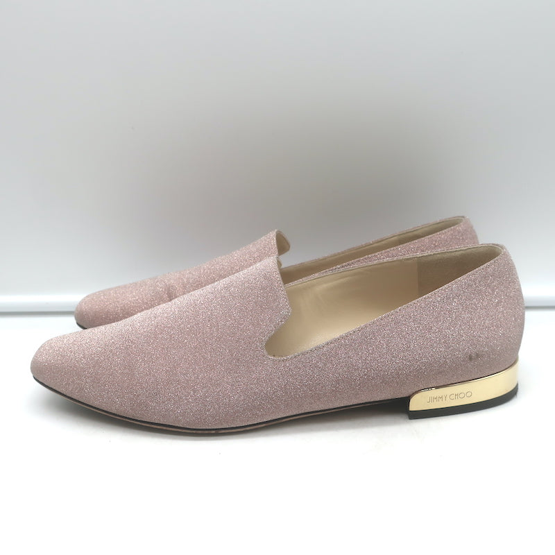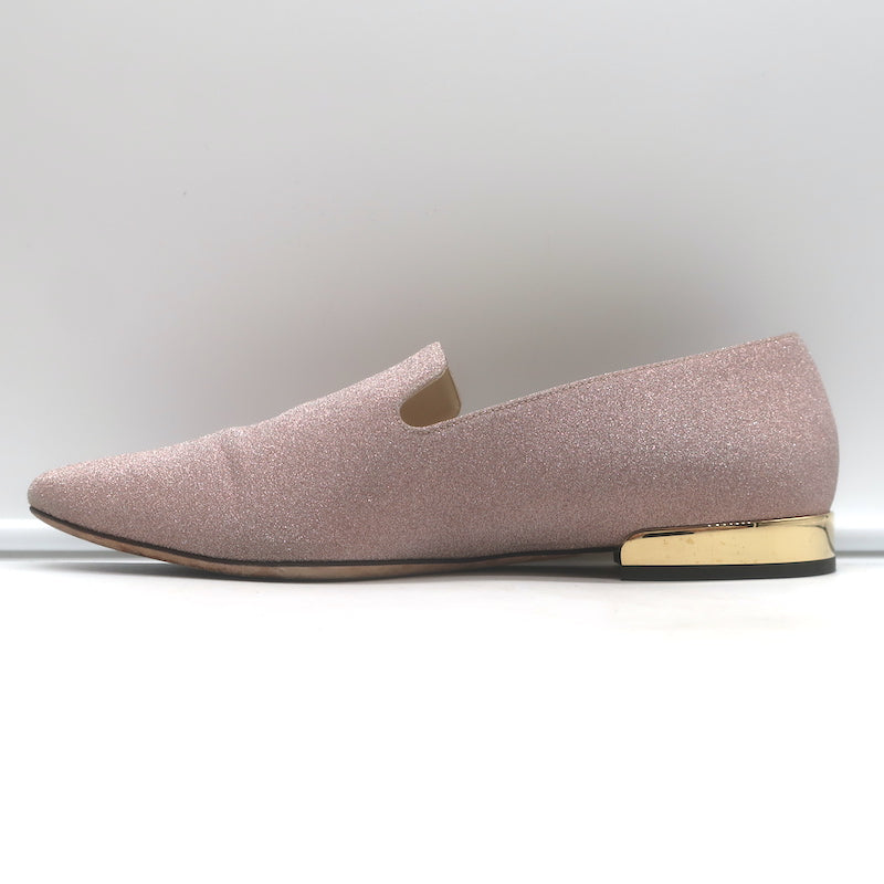Jimmy Choo Jaida Glitter Smoking Slippers Pink Size 38 Slip-On Flats