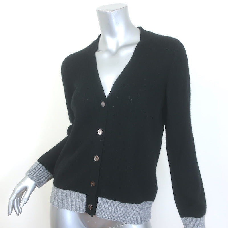 Jumper 1234 Contrast Cashmere Cardigan Black & Gray Size 2 V-Neck Sweater