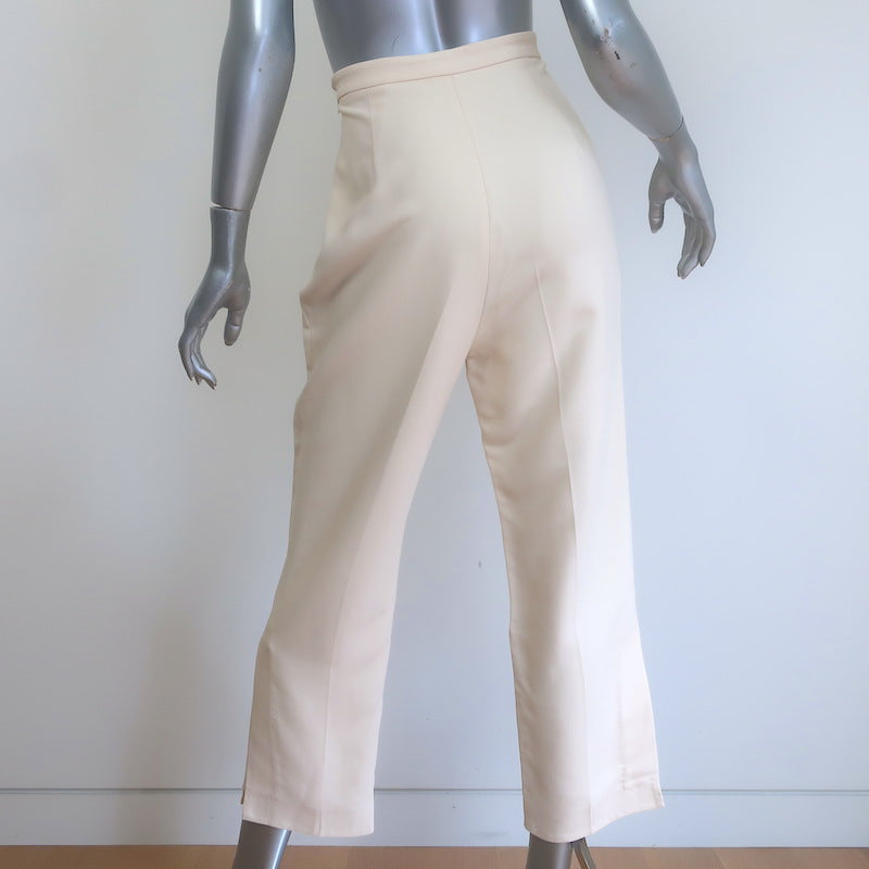 KHAITE Pintucked Cropped High Rise Trousers Ecru Size 8