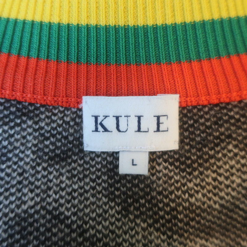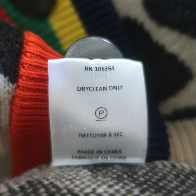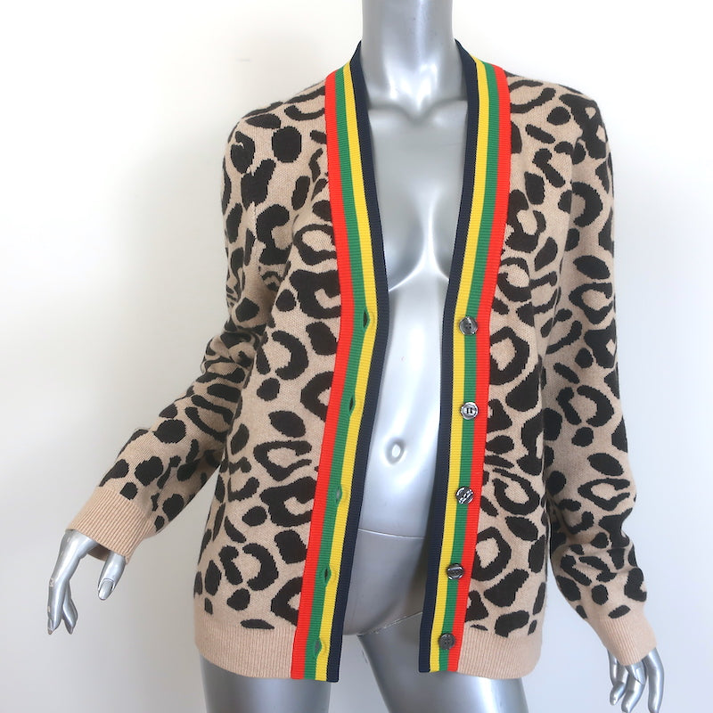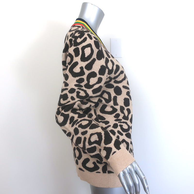 Kule The Cat Cardigan Beige Leopard Jacquard Knit Size Large V-Neck Sweater