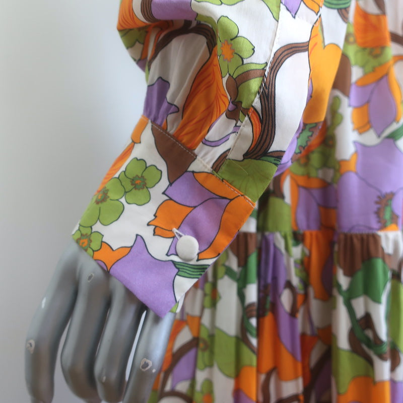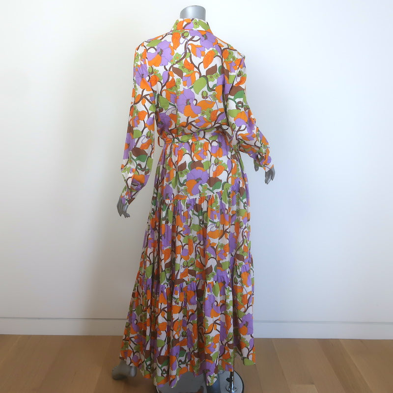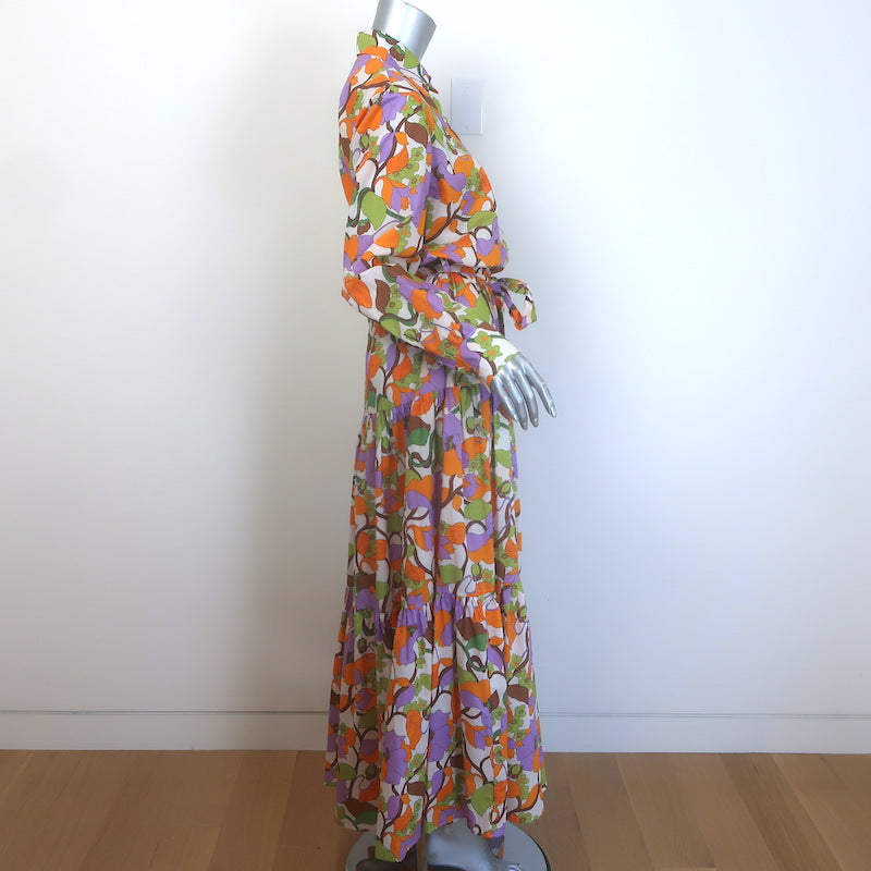 La DoubleJ Bellini Tiered Maxi Dress Cream/Multi Floral Print Cotton Size Large