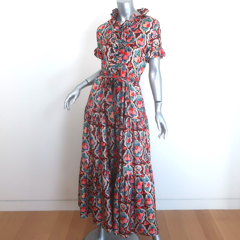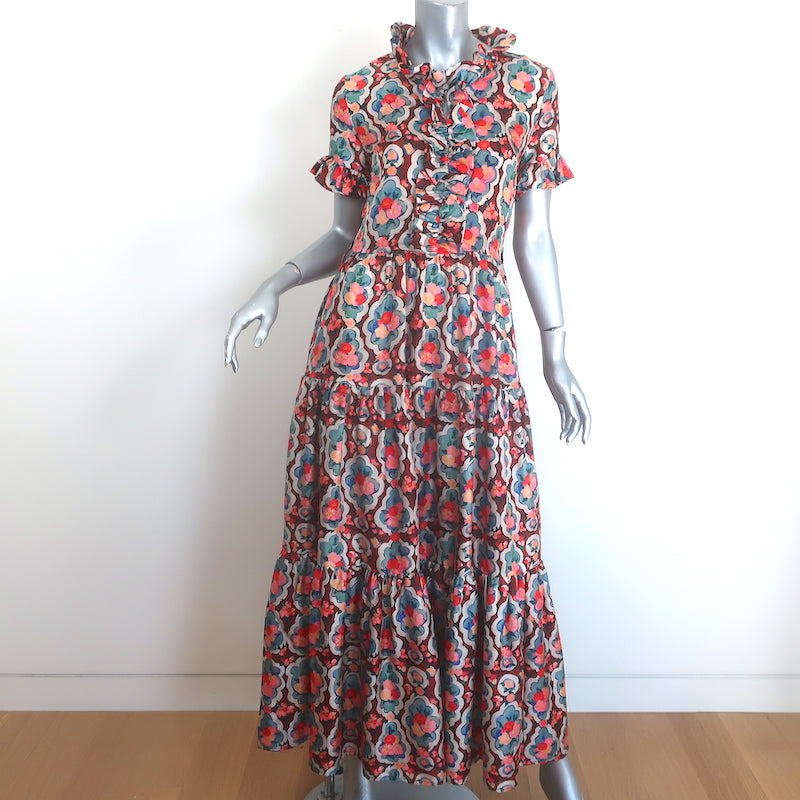 La DoubleJ Long and Sassy Maxi Dress Matisse Print Silk Twill Size Extra Small
