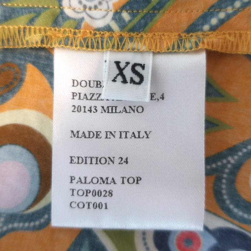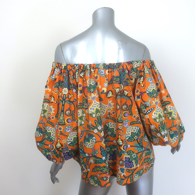 La DoubleJ Paloma Off the Shoulder Top Orange Printed Poplin Size Extra Small Measurements