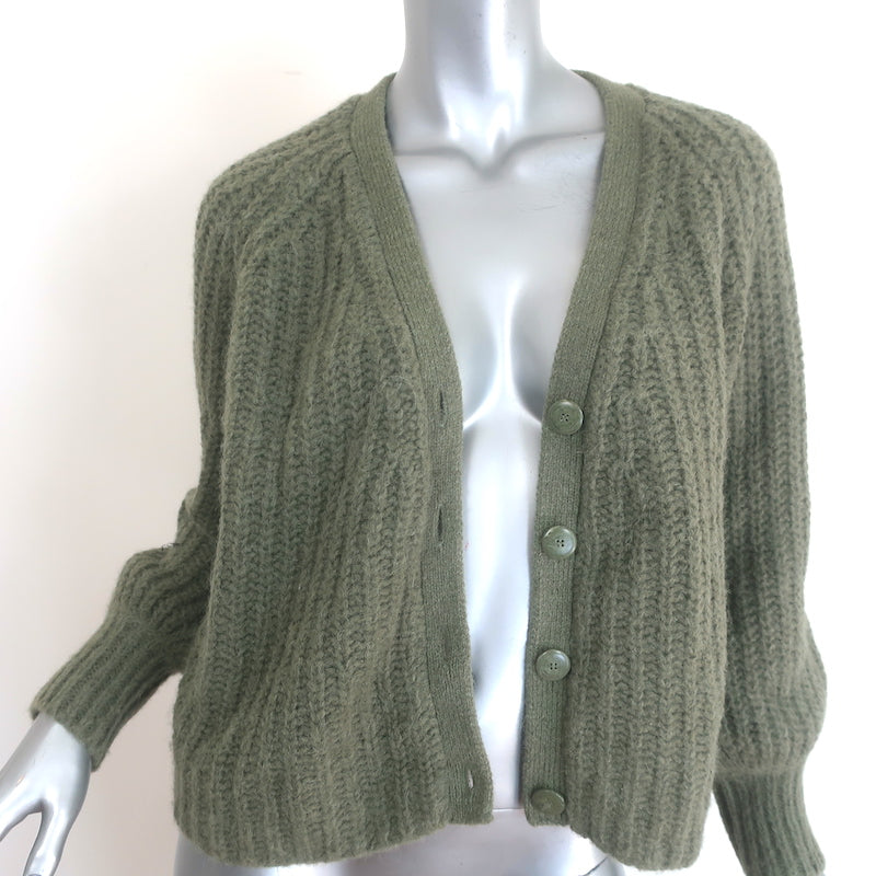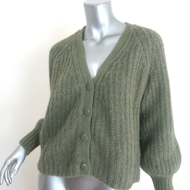La Maille Sezane Basile Cardigan Olive Ribbed Alpaca-Blend Size Extra Small