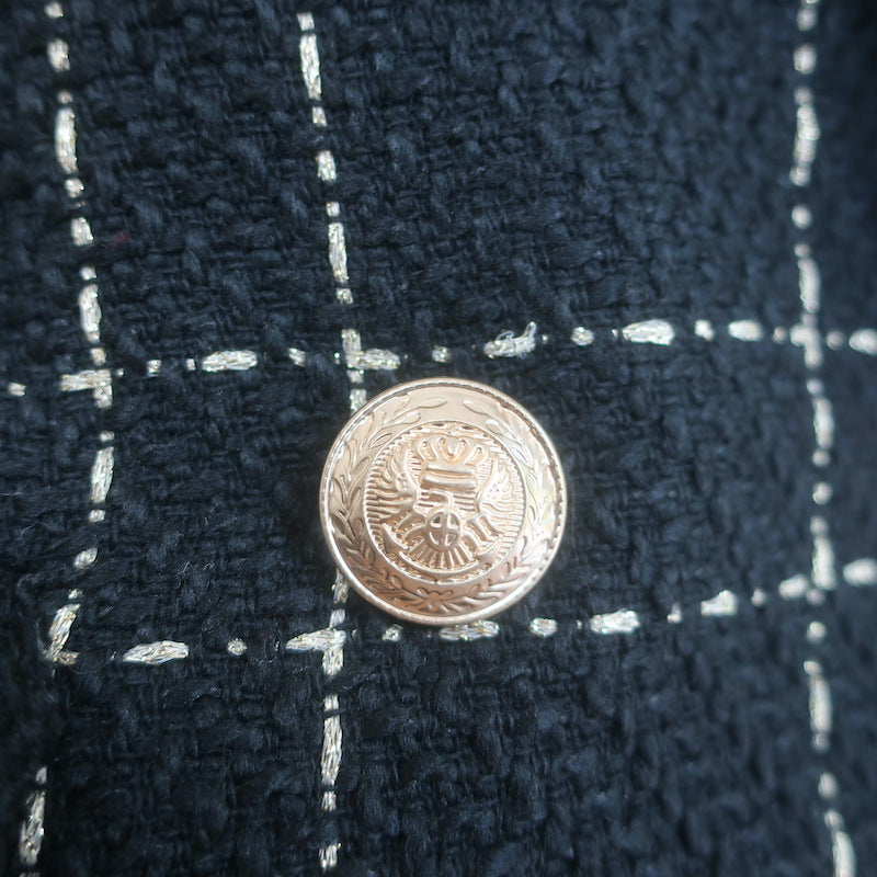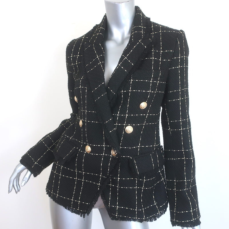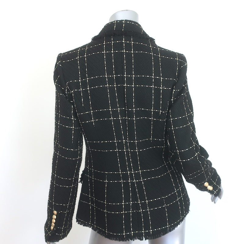 L'Agence Kenzie Fringed Tweed Blazer Black/Gold Size 4 Double Breasted Jacket