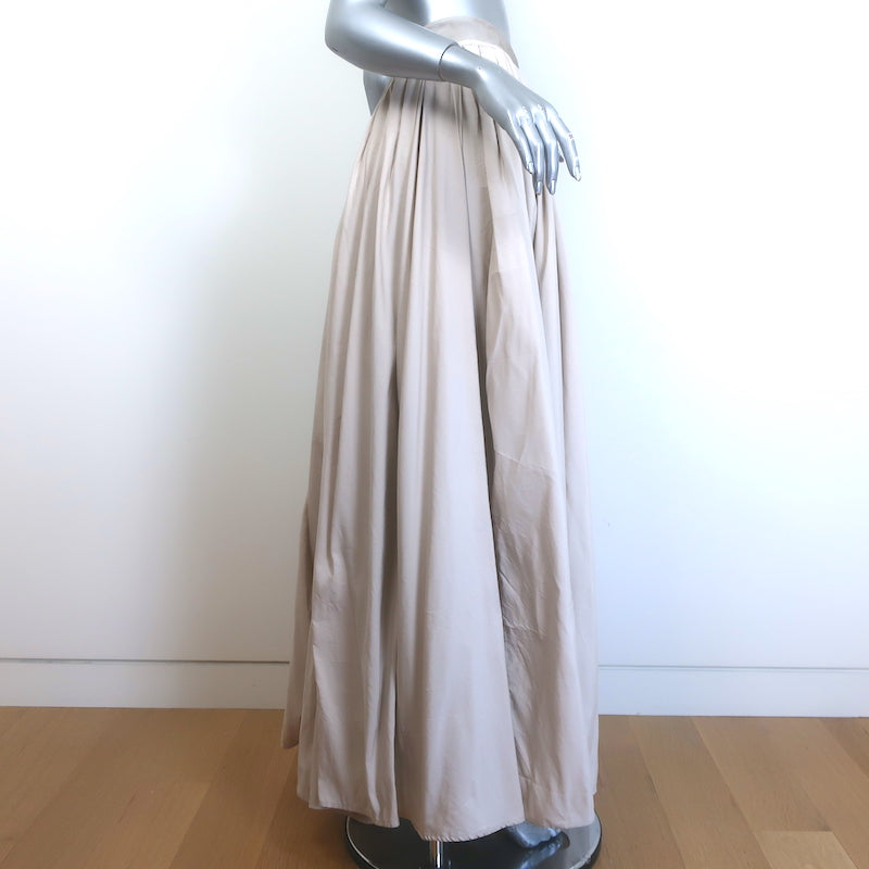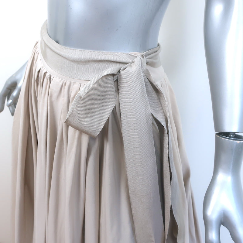 Lanvin Collection Blanche Ribbon-Tie Pleated Maxi Skirt Beige Silk-Blend Size 38