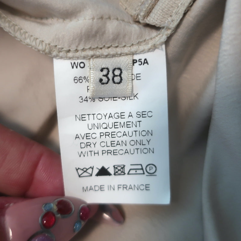 Gently worn. Great condition. No flaws. 50% polypropylene, 50% silk -**-